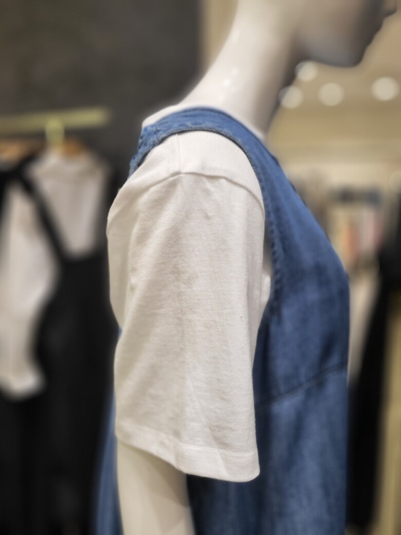 뒷넥의 스트링 포인트와 셔링 디테일이 세련된 분위기를 더해주며,
