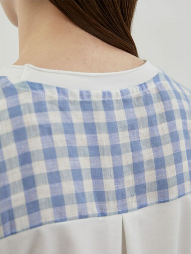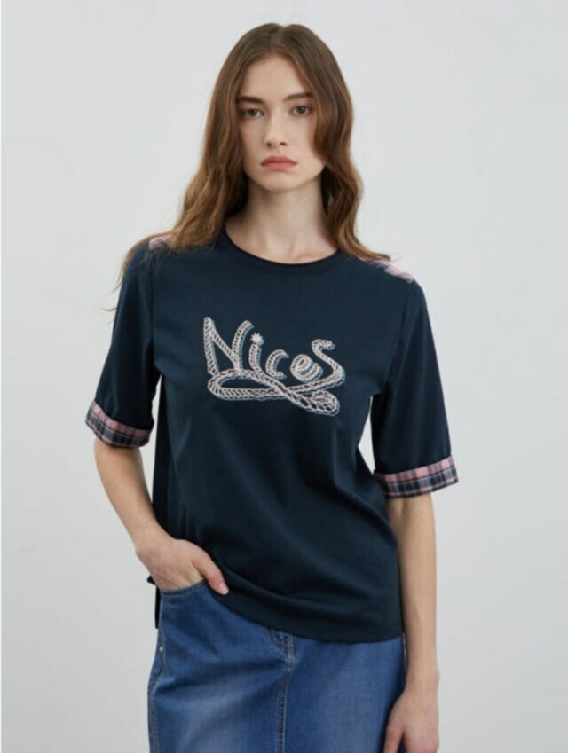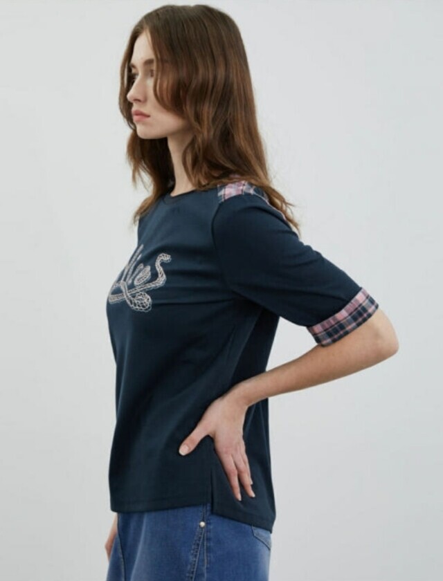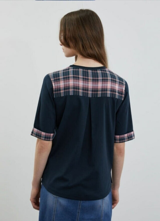 [올리비아로렌]체크 배색 프린팅 티셔츠VVCAS4M3371