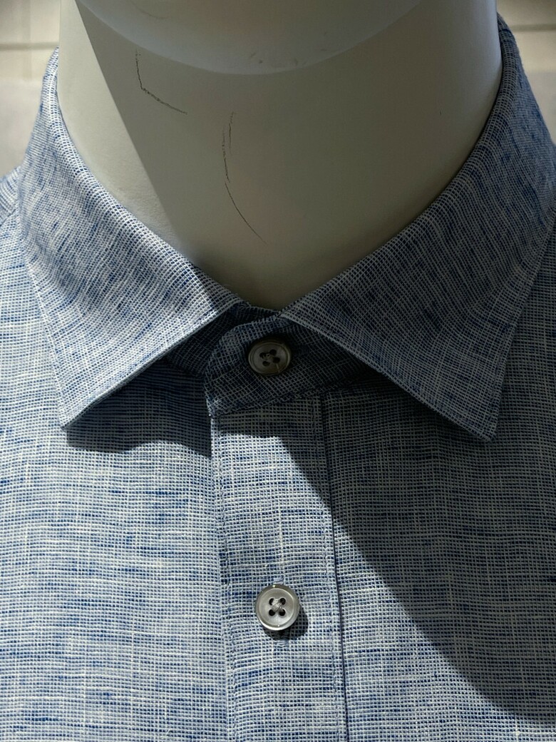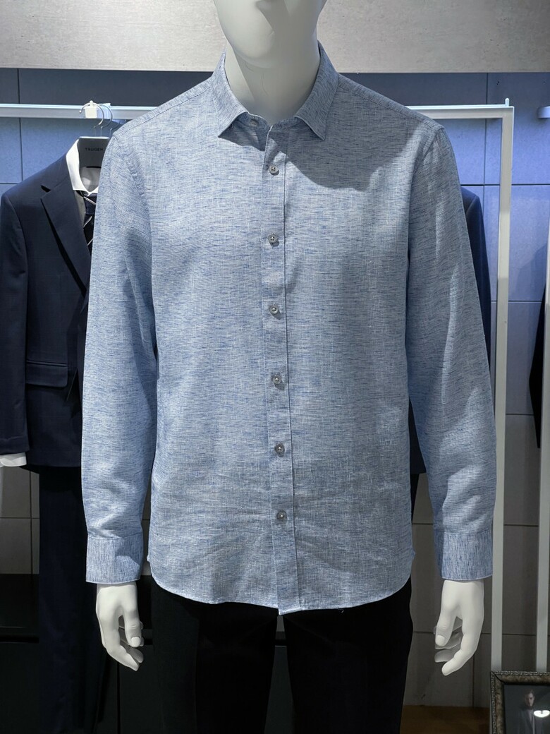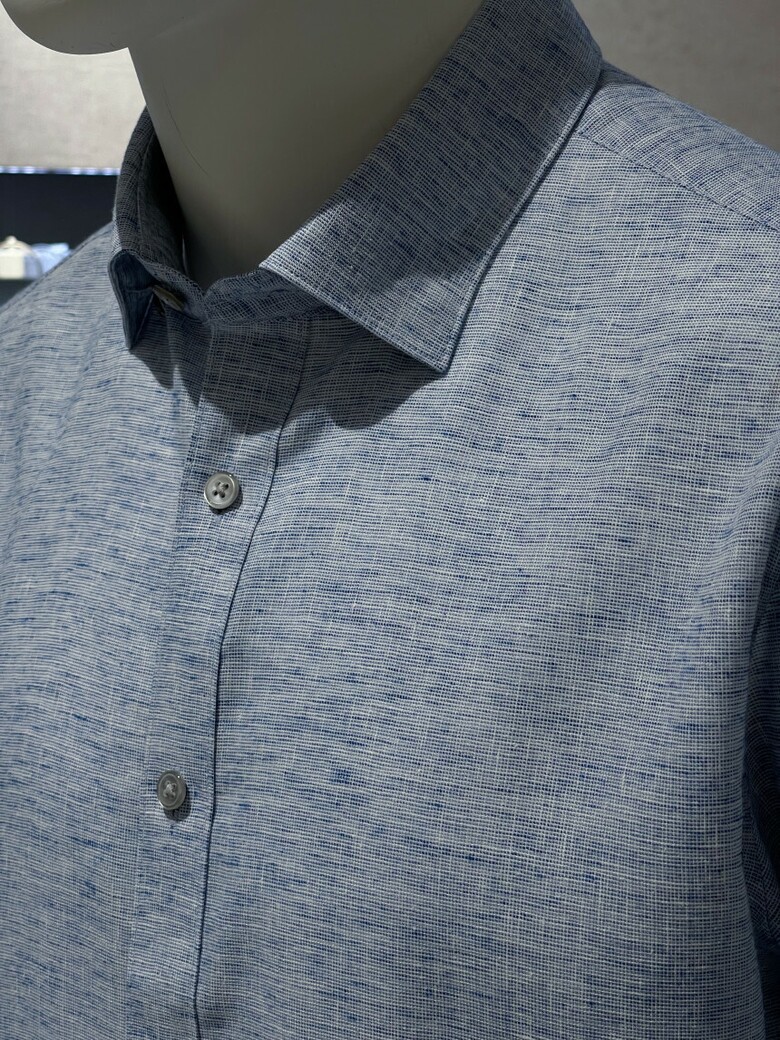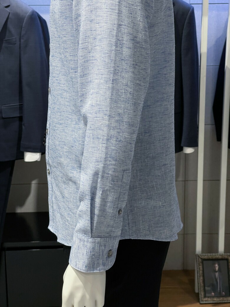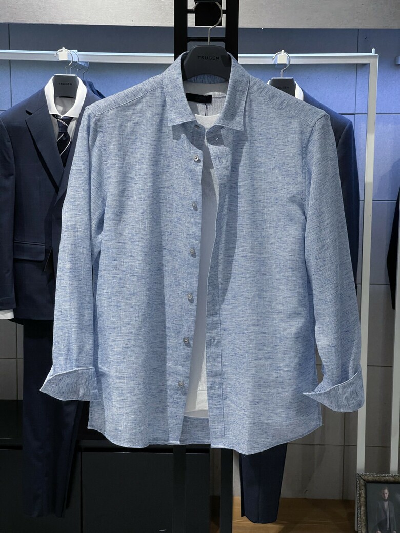 트루젠 린넨혼방 라이트블루 히든버튼 기본핏 캐주얼 셔츠 2322RC020037