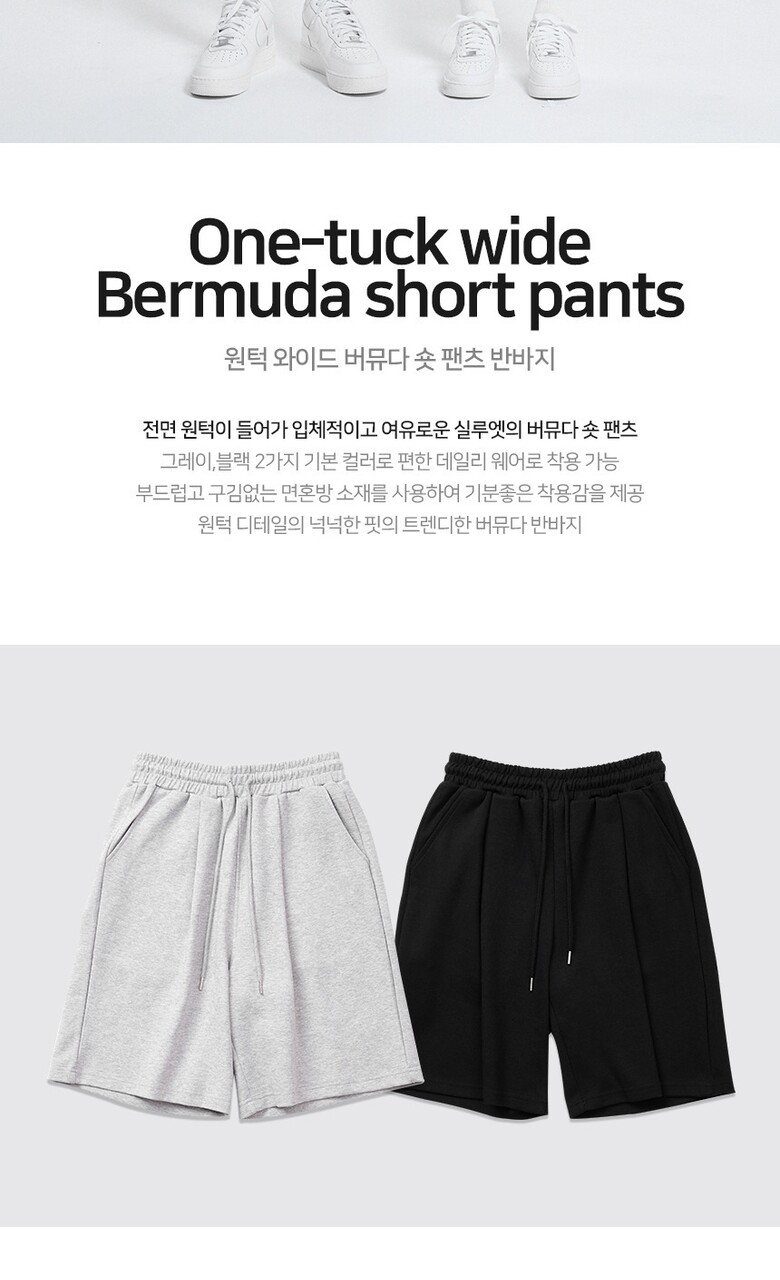 원턱 와이드 버뮤다 숏 팬츠 반바지