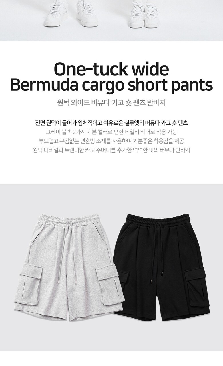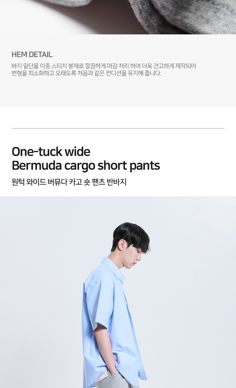 원턱 와이드 버뮤다 카고 숏 팬츠 반바지