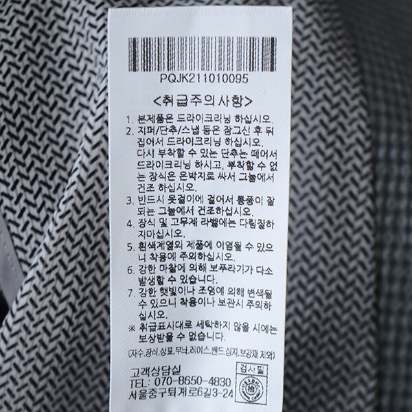 세탁방법 및 취급시 주의사항 : 본 상품 케어라벨 참조