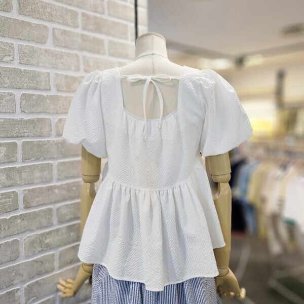 LC41E8BL013X_시어서커 끈 장식 블라우스