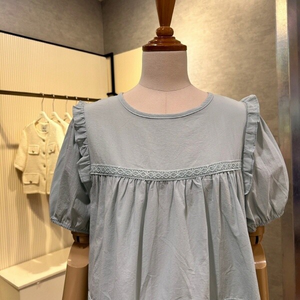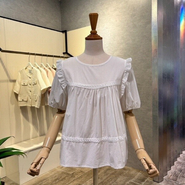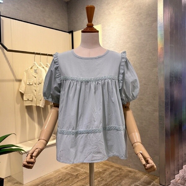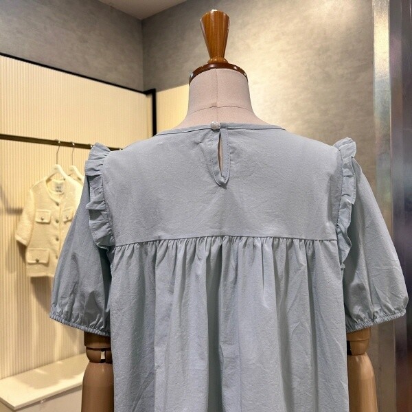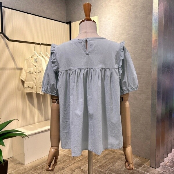 2025년 s/s?신상?프릴 자수 라인 블라우스 입니다. 캐쥬얼 하면서 사랑스러운 디자인이 포인트 아이템 입니다.