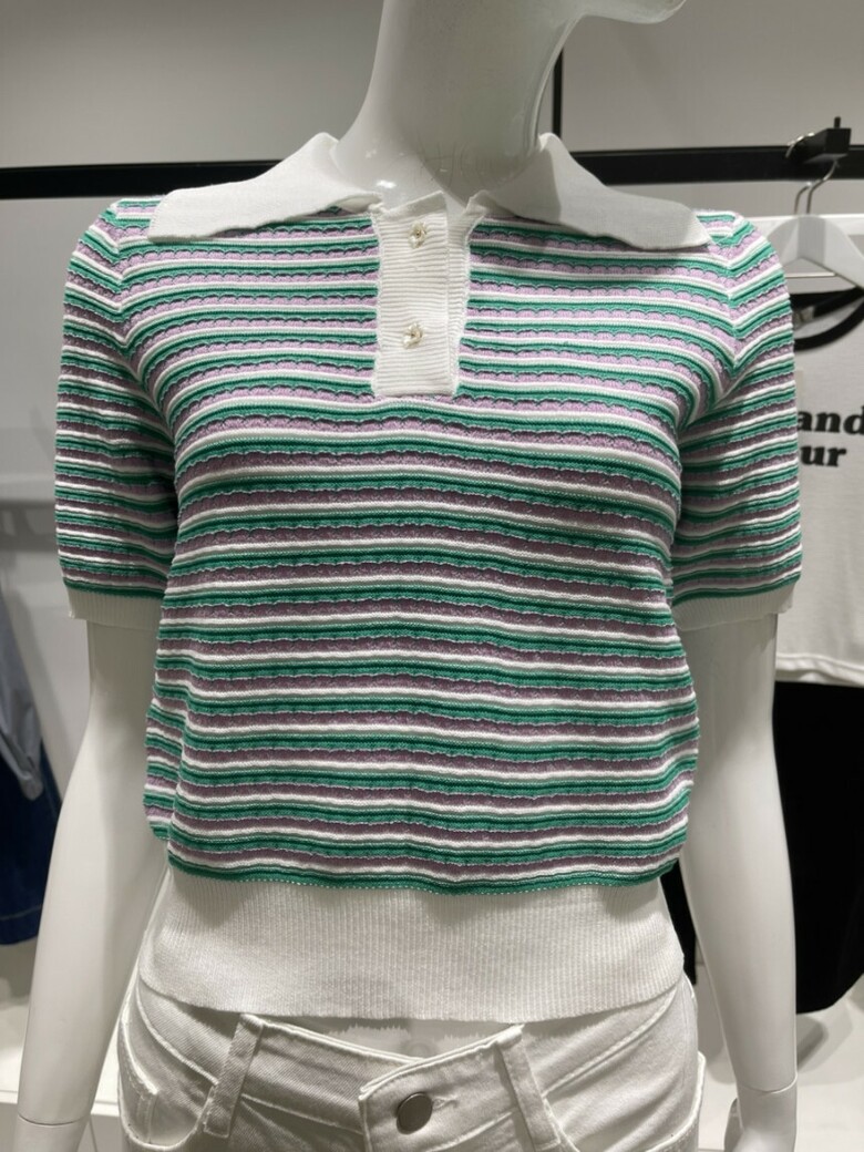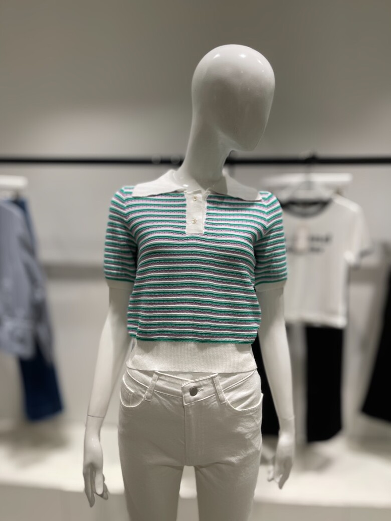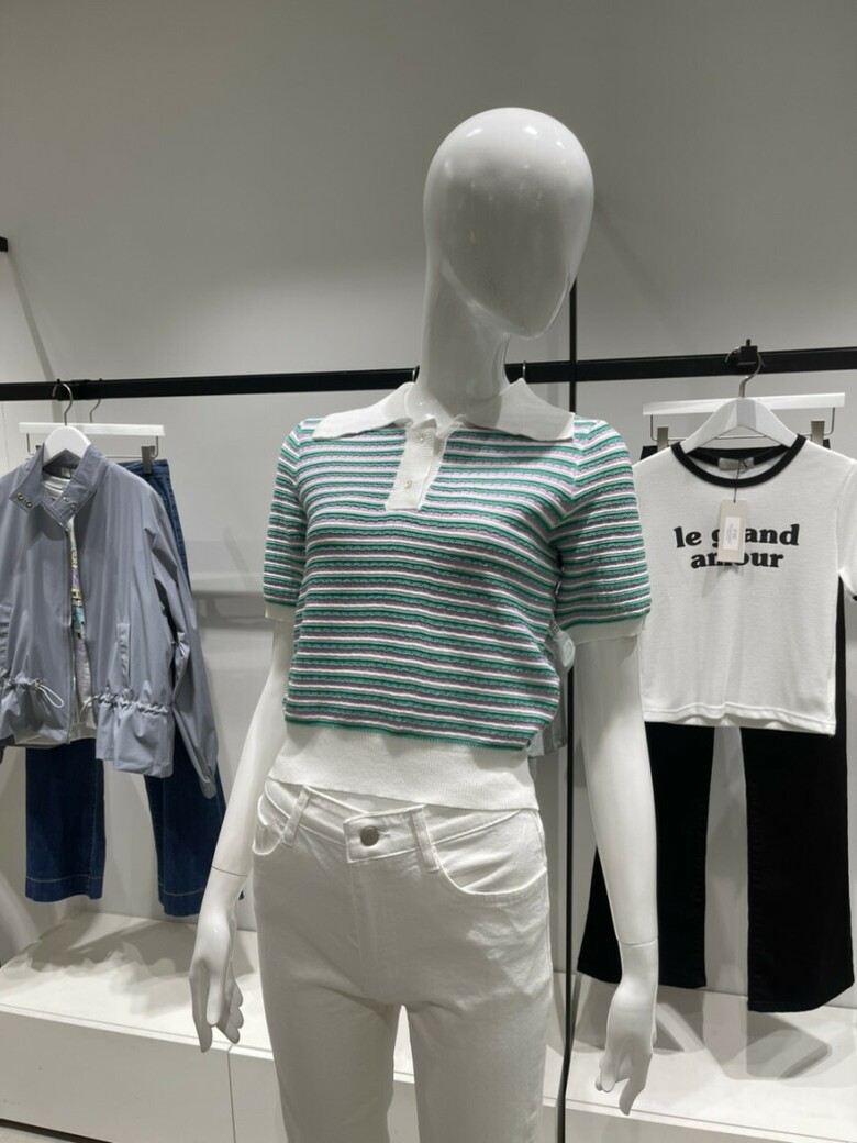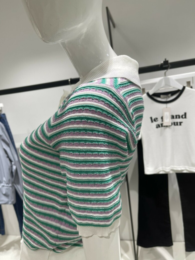 이프네 꽃단추 배색카라 단가라 카라니트 DP4WKT20