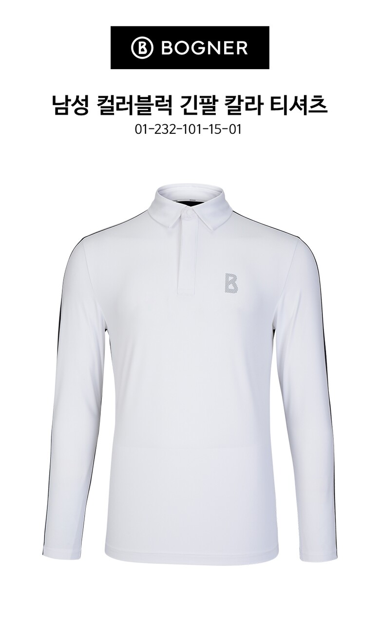 [보그너] 남성 컬러블럭 긴팔 칼라 티셔츠 WHITE