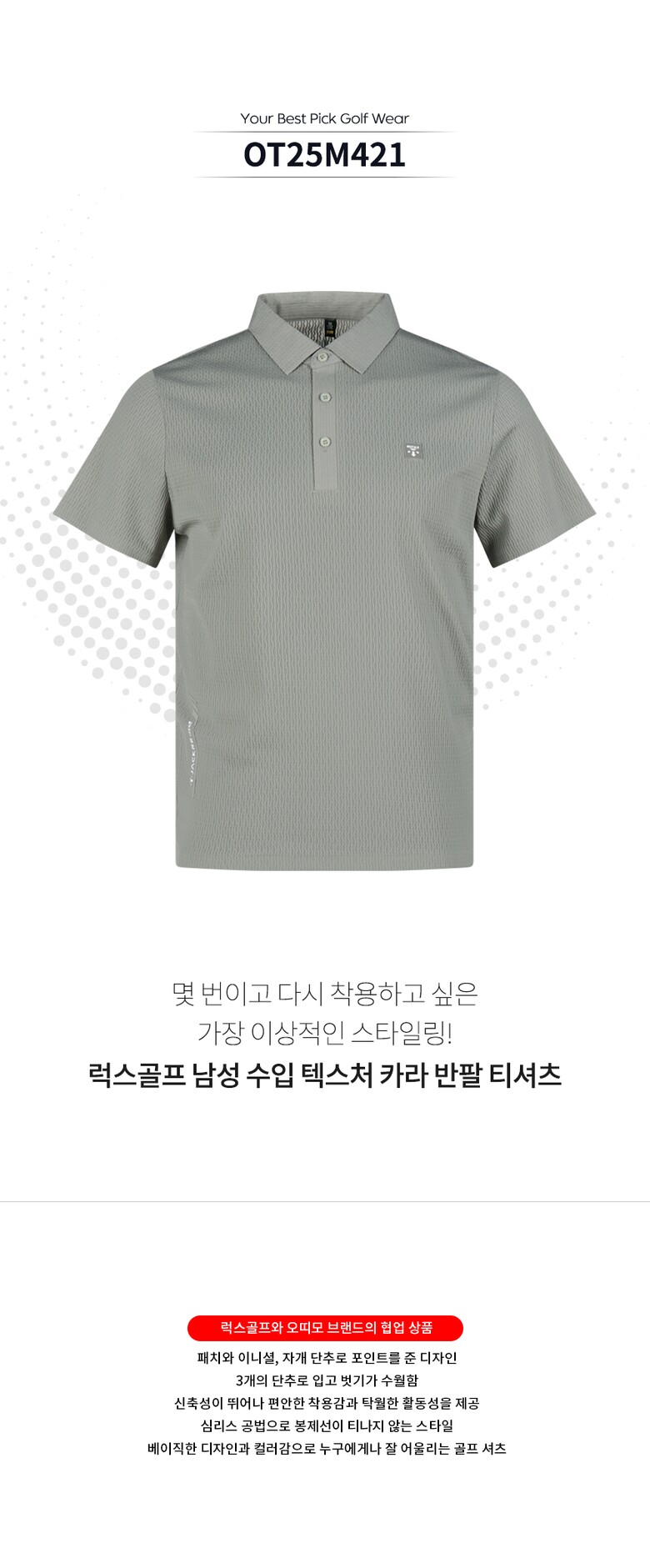 럭스골프 남성 수입 텍스처 카라 반팔 티셔츠 OT25M421