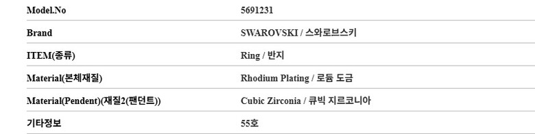 | 7. 주요 사양 | 로듐 도금 반지 |