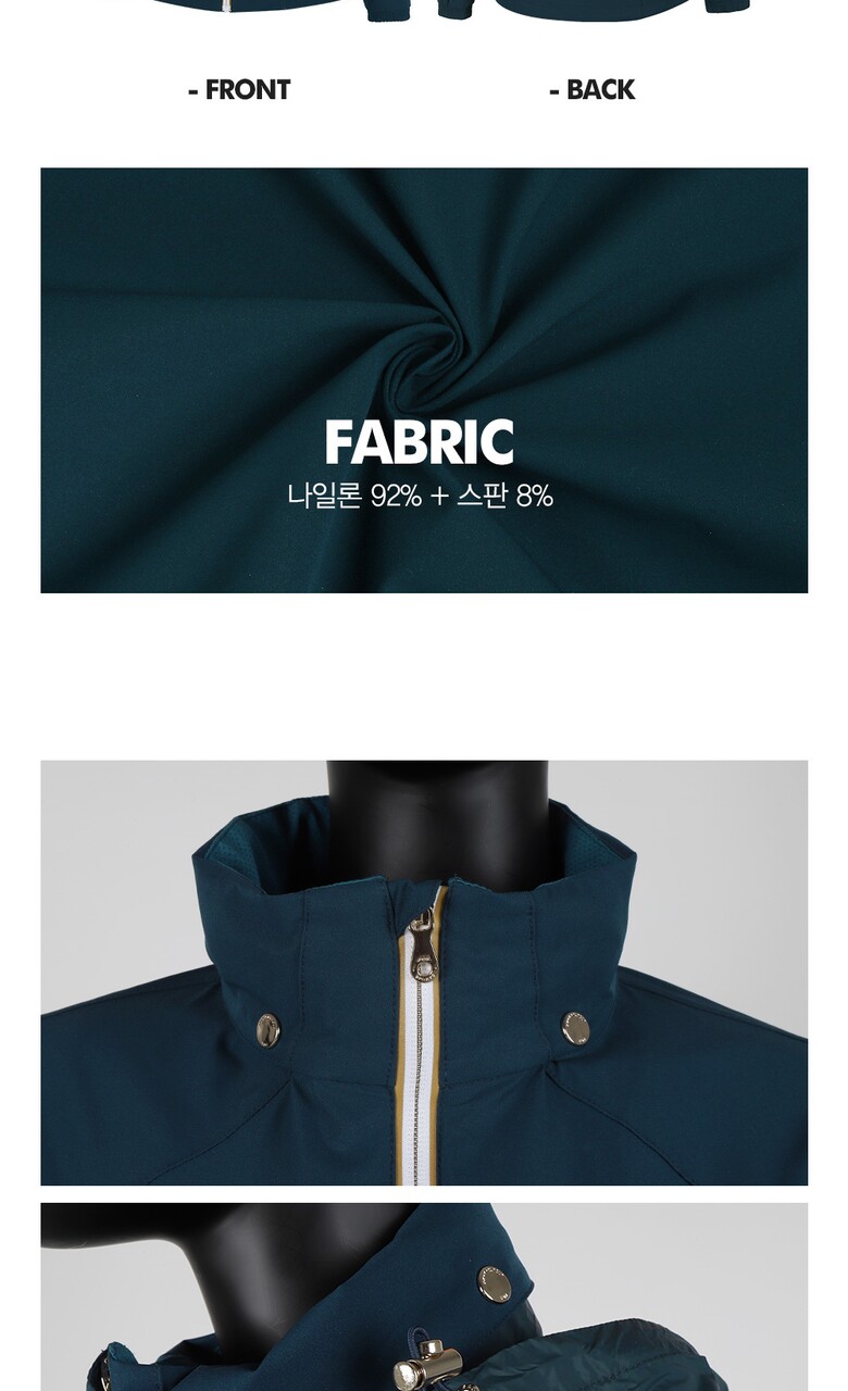 | 1. 제품 소재 (섬유의 조성 또는 혼용률을 백분율로 표시, 기능성인 경우 성적서 또는 허가서) | 겉감 : 폴리에스테르 100% / 배 색 : 나일론 100% |