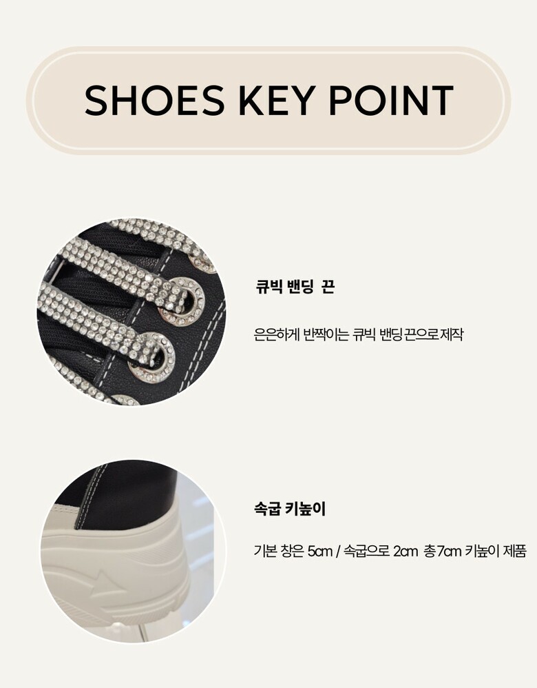 7cm 키높이 경량 몰드창과 은은한 핫픽스 밴드 적용한 데일리 스니커즈