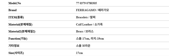페라가모 77 0379 0780305 (770379 780305) 간치니 스몰 브라운 가죽 팔찌