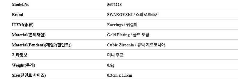 | 7. 주요 사양 | 골드 도금 귀걸이 |