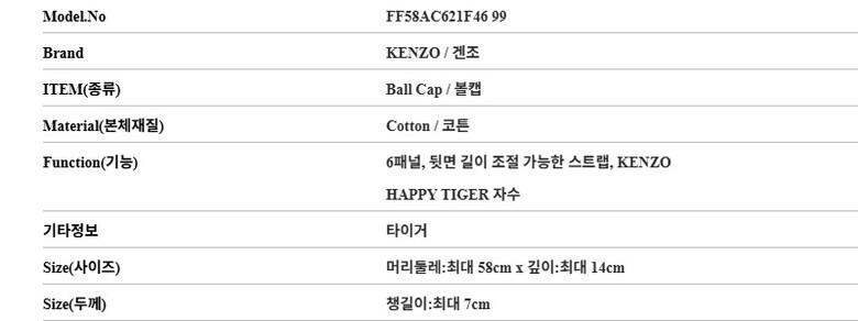 겐조 FF58AC621F46 99 해피 타이거 볼캡