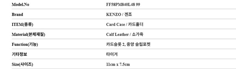 겐조 FF58PM840L48 99 KENZO X VERDY 타이거 카드지갑