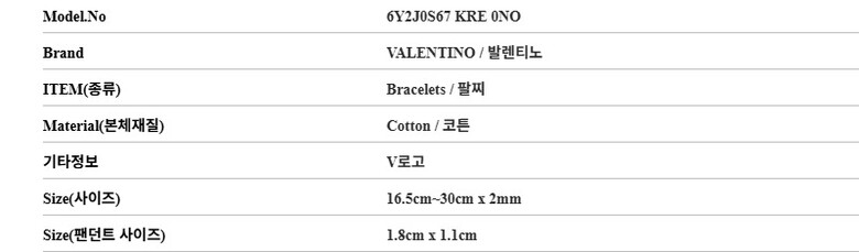 발렌티노 6Y2J0S67 KRE 0NO (J0S67 KRE 0NO) 가라바니 V로고 코튼 팔찌