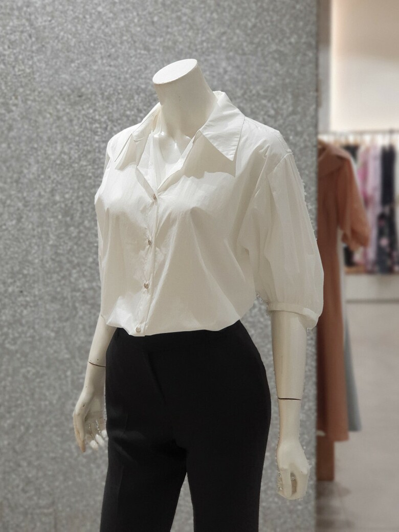 퍼프 슬리브를 연출한 셔츠블라우스입니다.