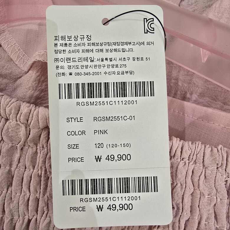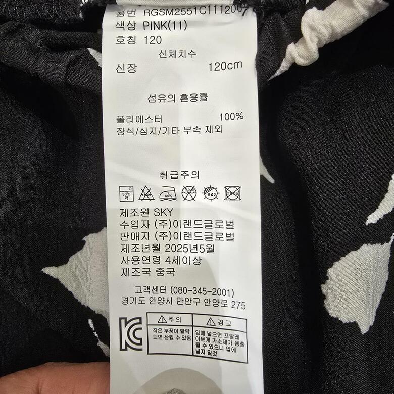 | 6. 세탁방법 및 취급시 주의사항 | 상품상세참조 |