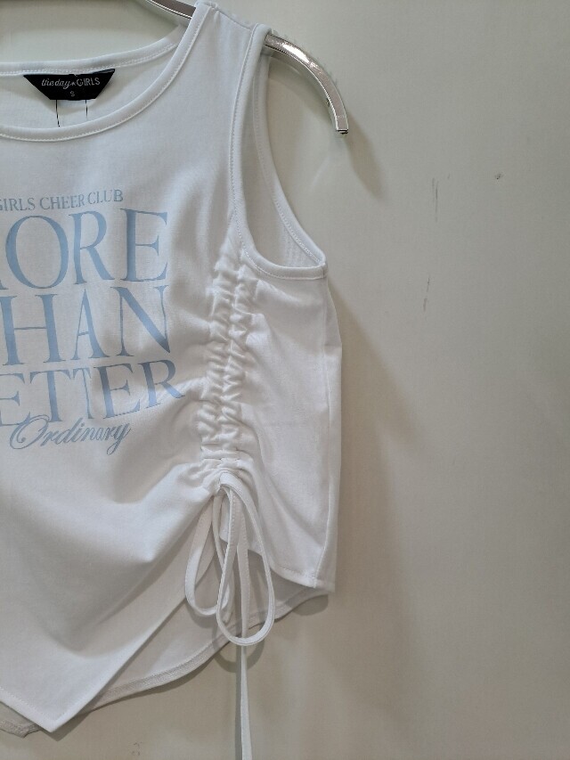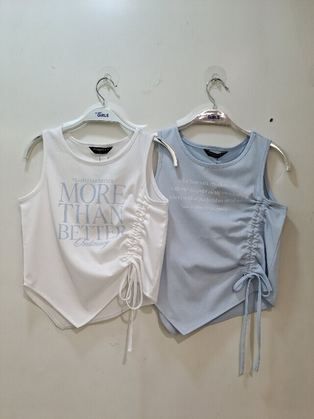 더데이걸|*|바캉스사선 셔링 나시 티|*|요즘 아이들이 좋아하는 스타일의 나시티 제품입니다.