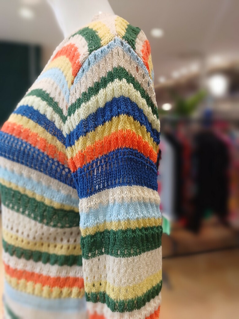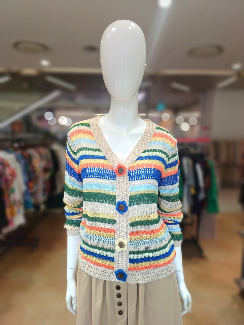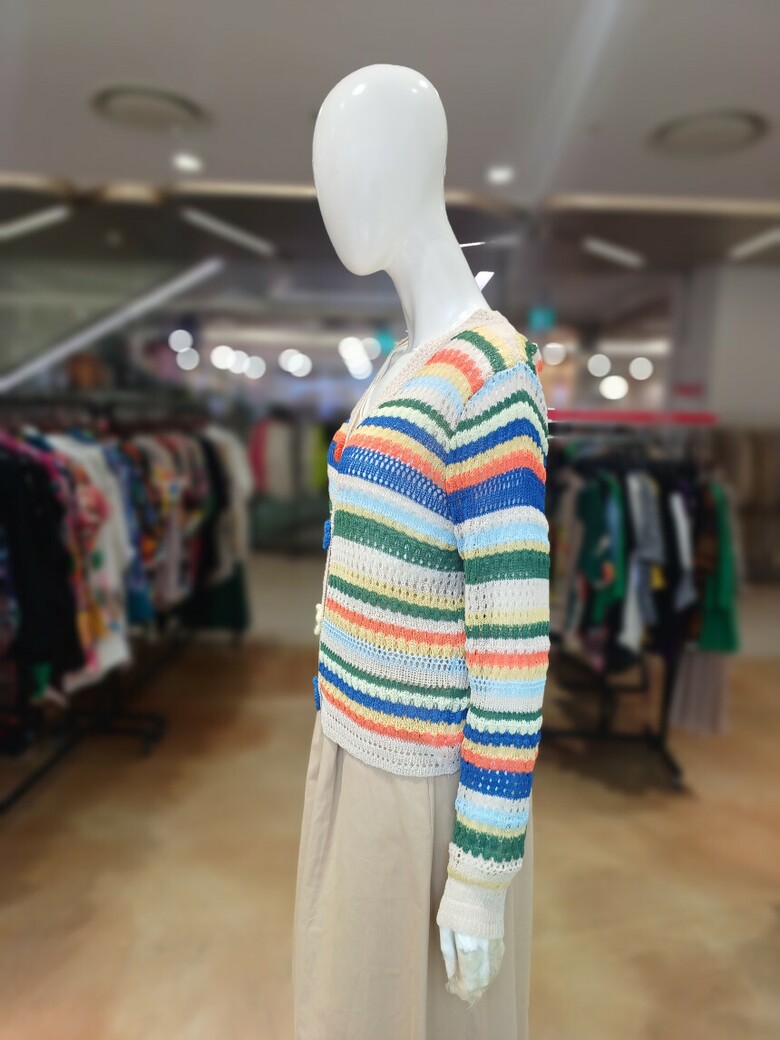 르니앤맥코이 스트라이프 배색 꽃단추 브이넥 가디건MM05CD770