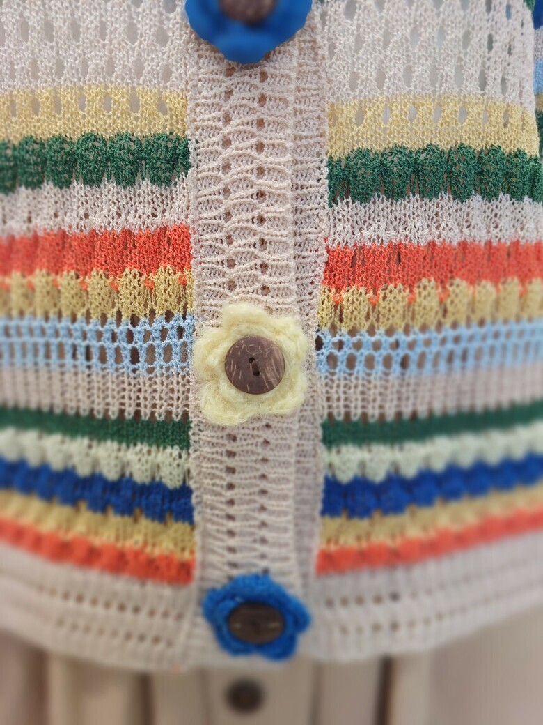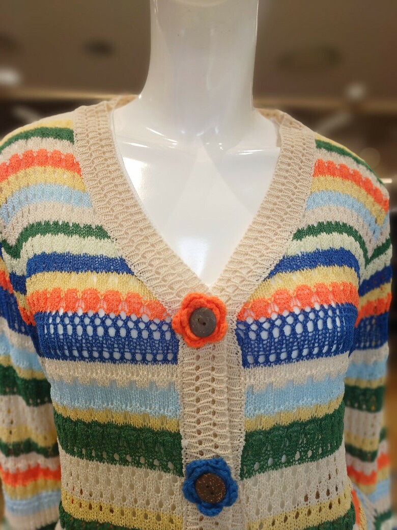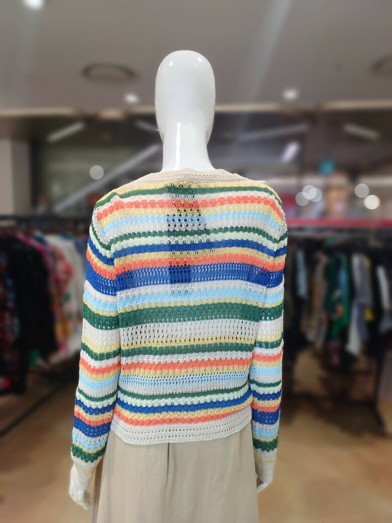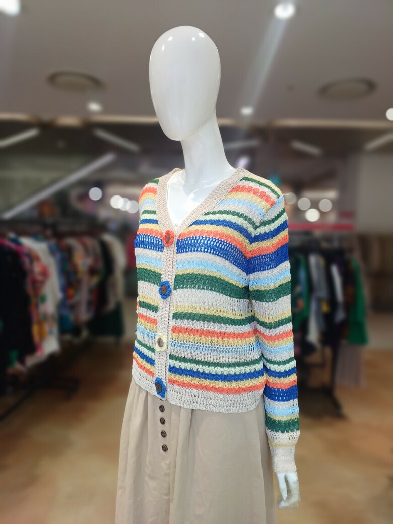 꽃단추 스트라이프배색 브이넥 가디건입니다