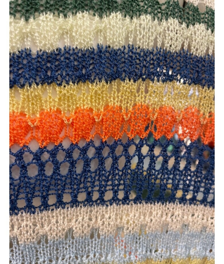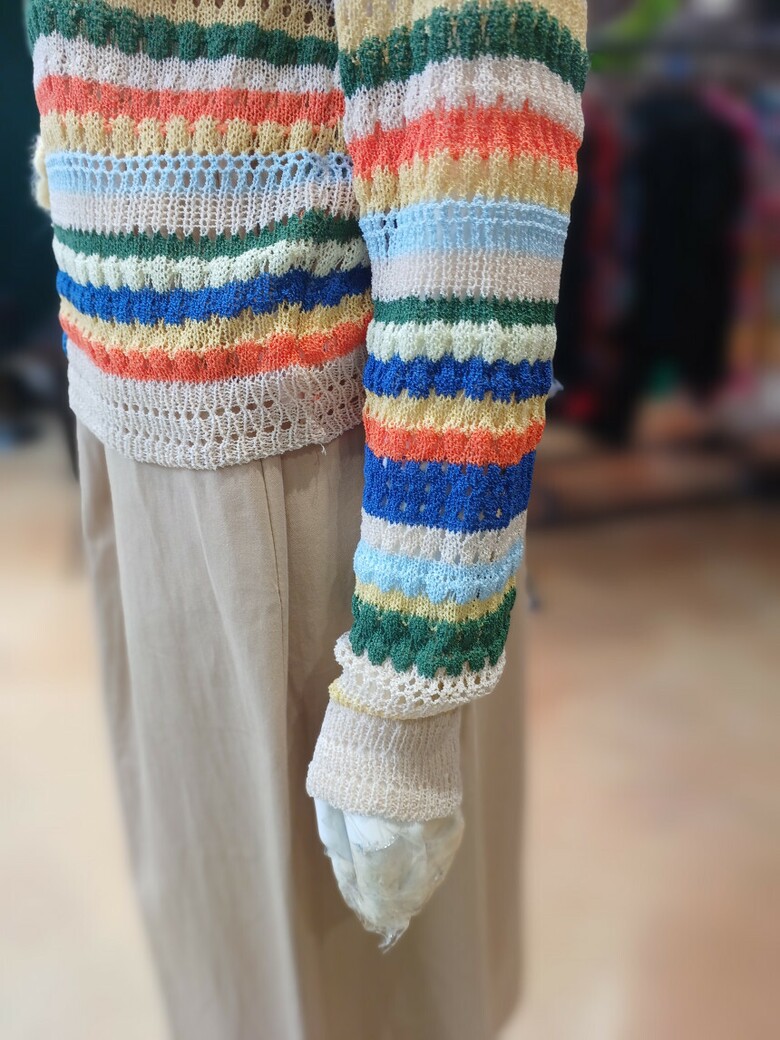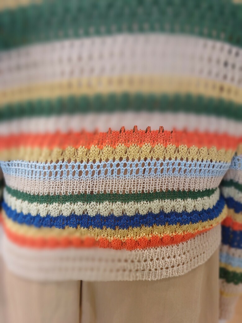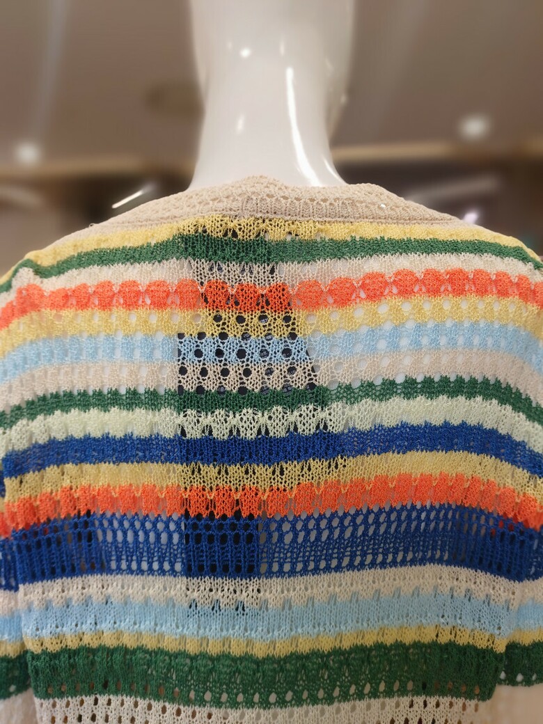 꽃단추 스트라이프배색 브이넥 가디건입니다