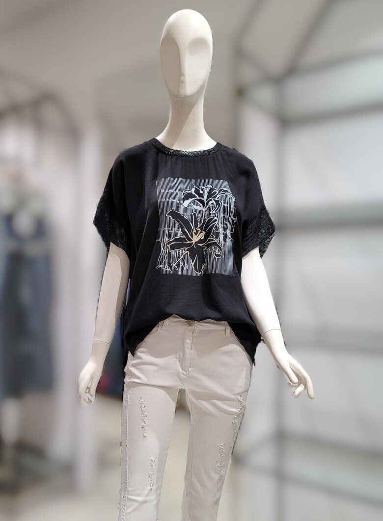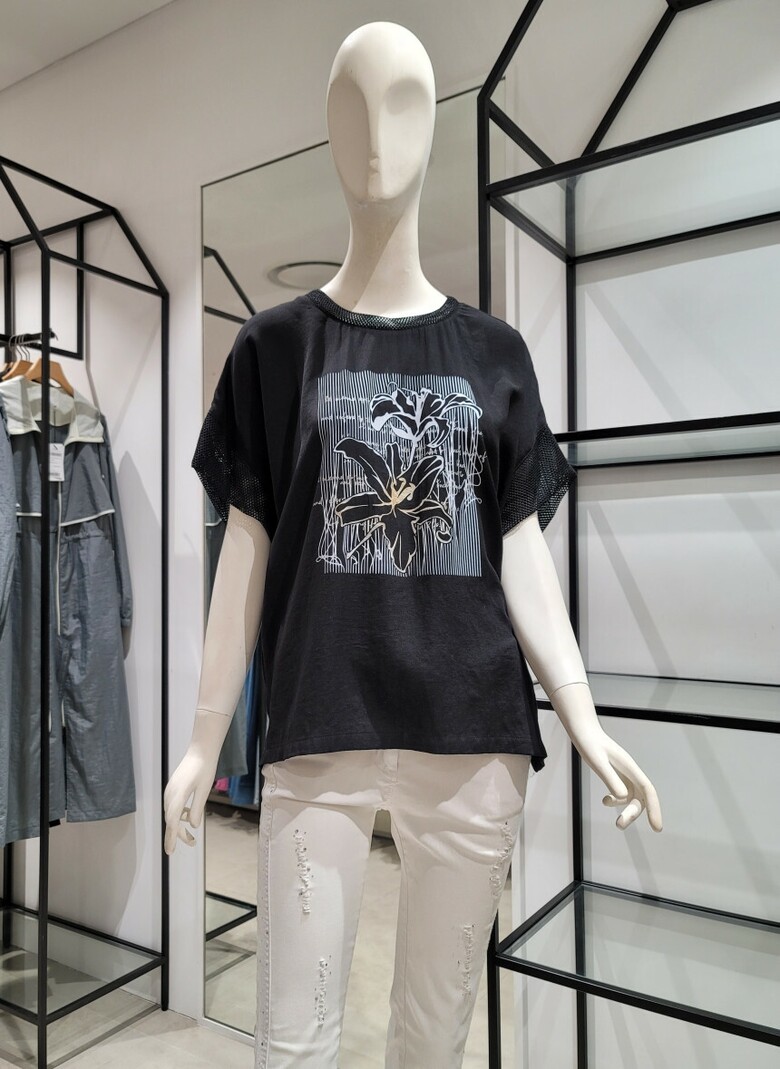 Si프린트 펀칭 배색포인트 블라우스SIBAE2434