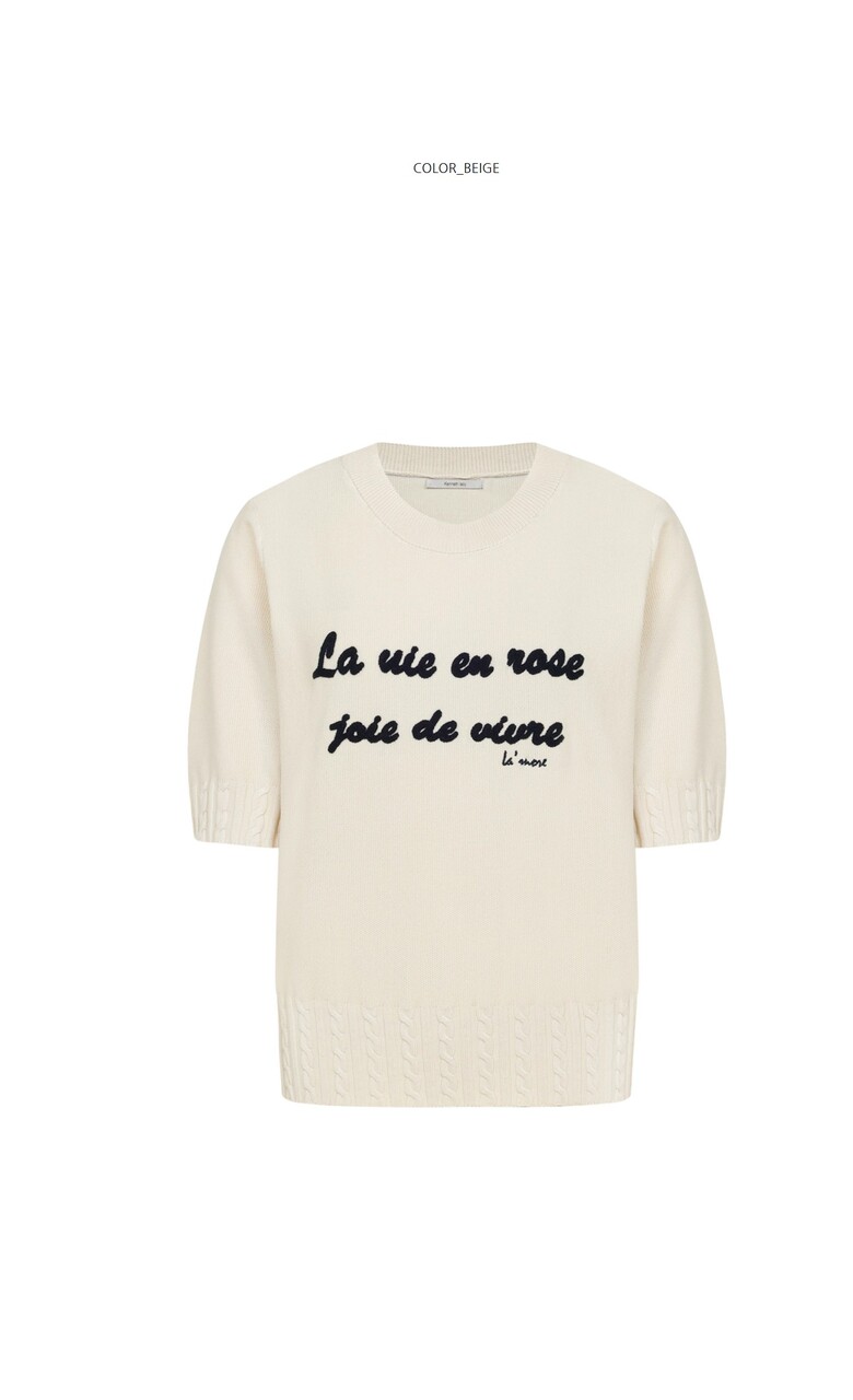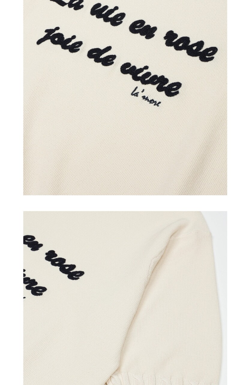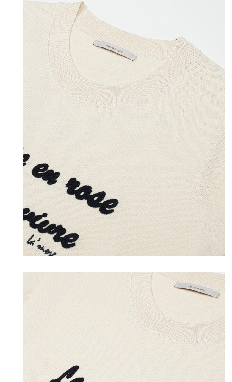 레터링 자수 디테일이 포인트가 되는 니트입니다.