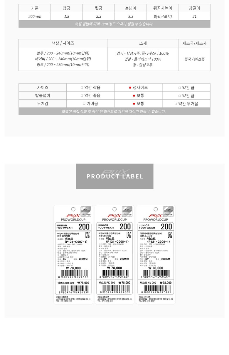 1. 제품 소재 (운동화인 경우에는 겉감, 안감을 구분하여 표시) 상세페이지 표기
