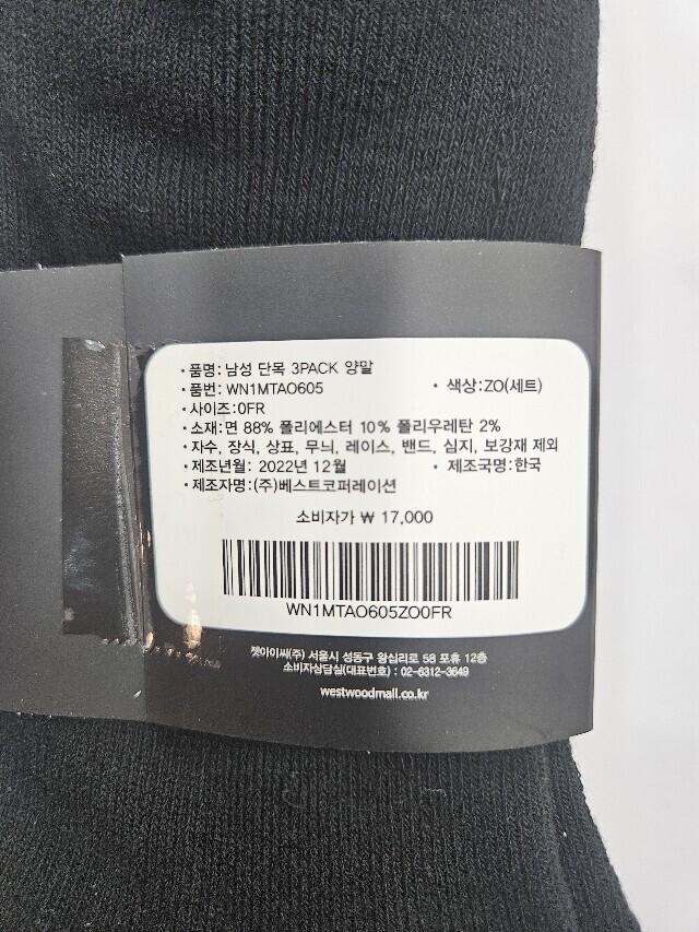 WN1MTAO605 Z0 남성 단목 3PACK 양말