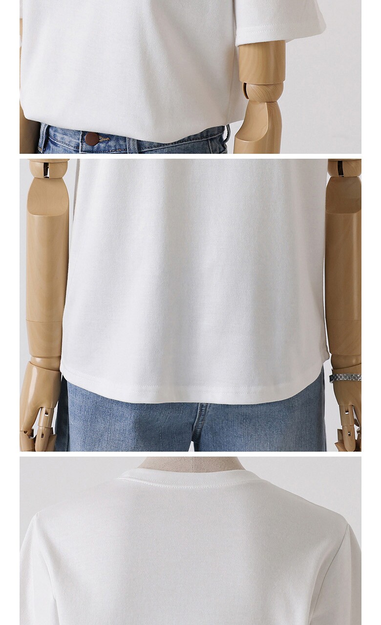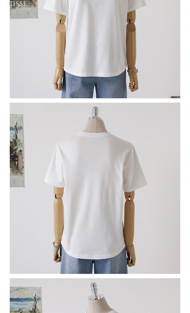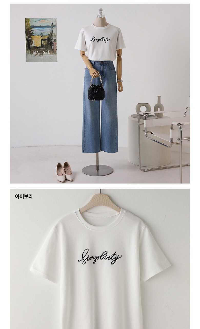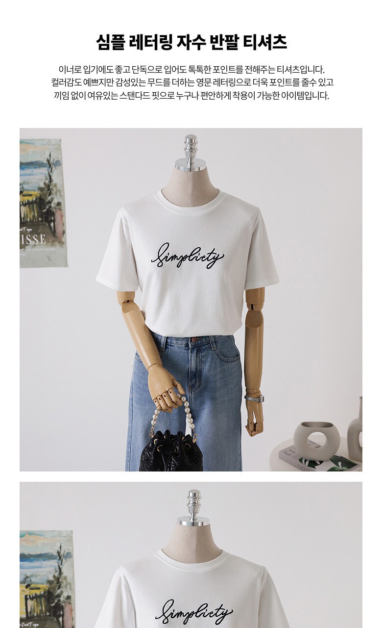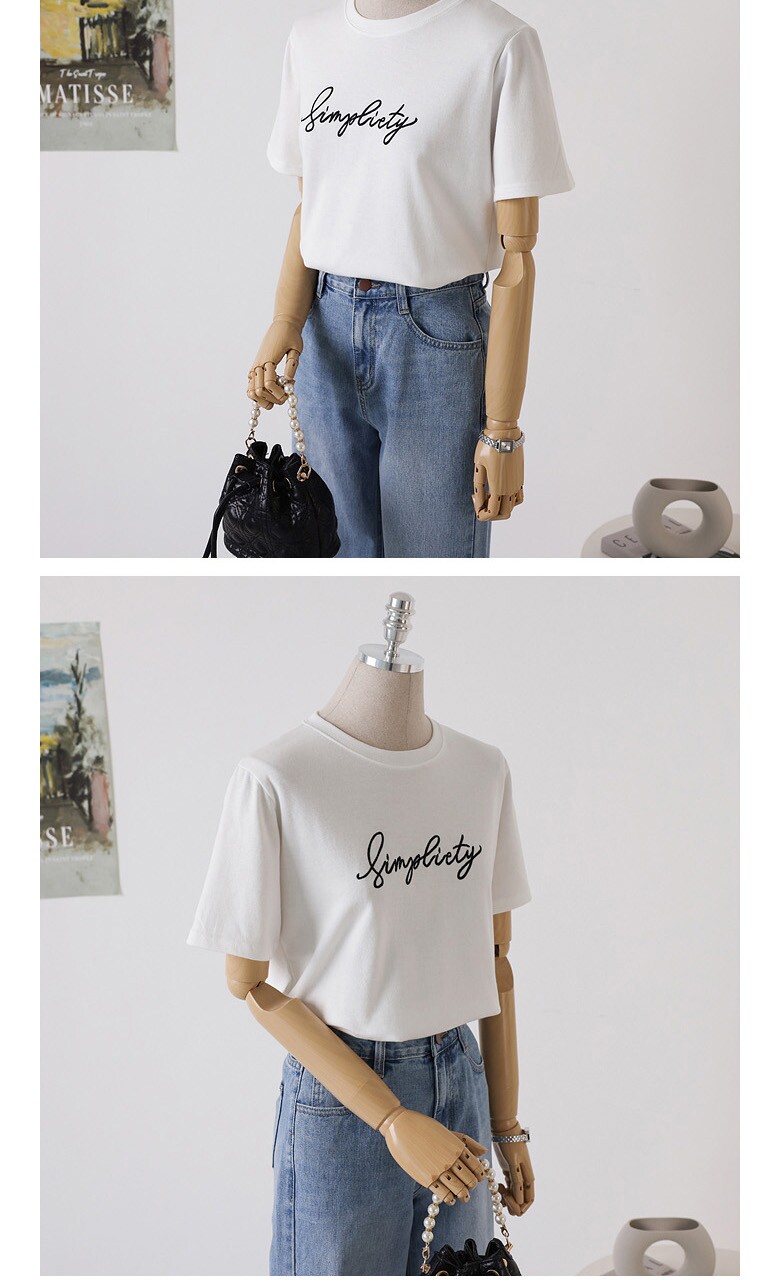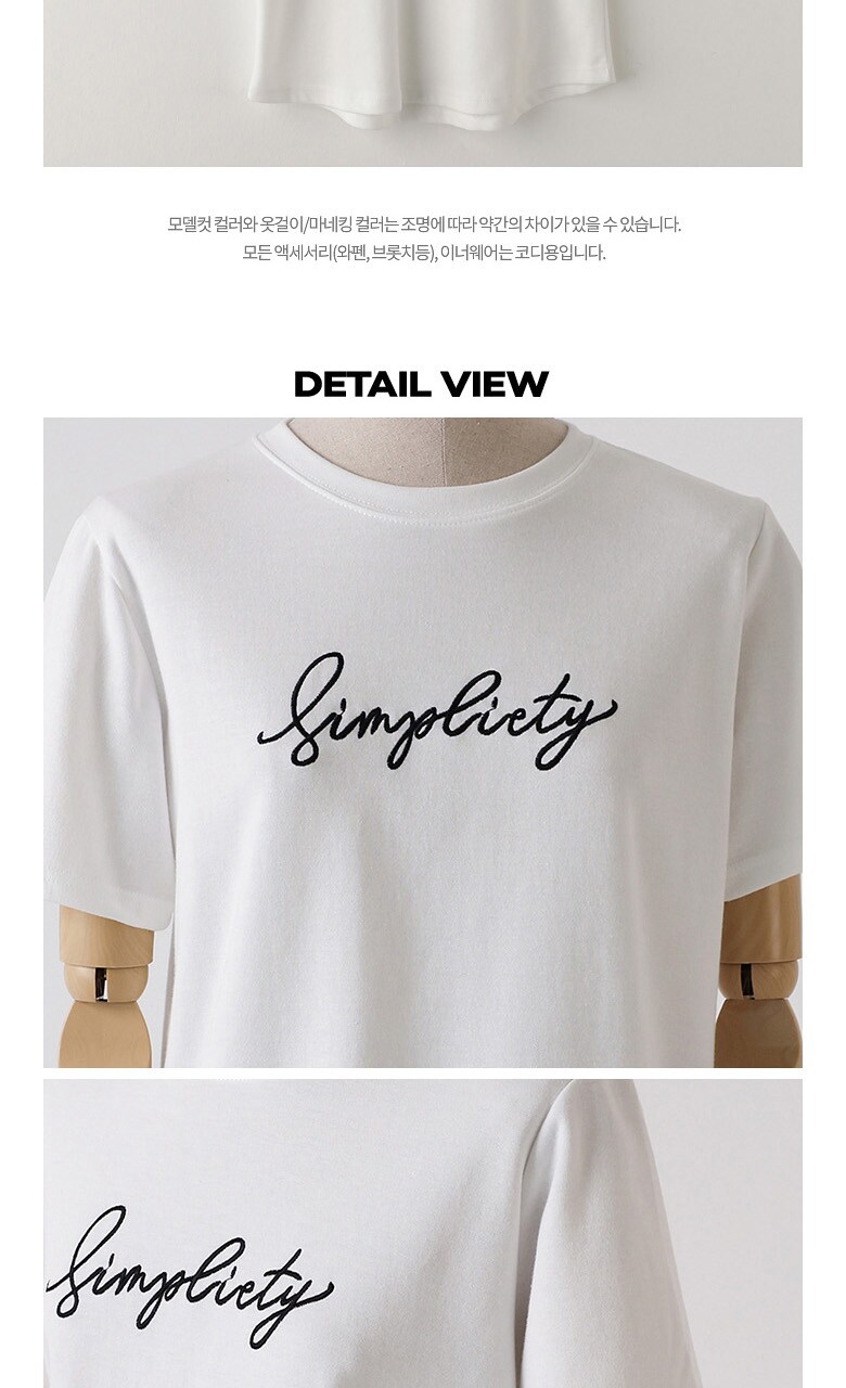 심플 레터링 자수 반팔 티셔츠_O2505TS901B