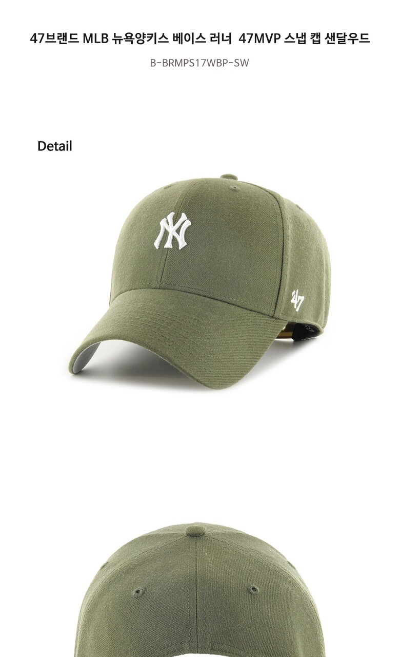 47브랜드 MLB 뉴욕양키스 베이스 러너 47MVP 스냅 캡 샌달우드 B-BRMPS17WBP-SW