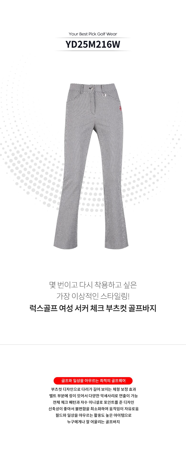 골피아 YD25M216W 여성 서커 체크 부츠컷 골프바지