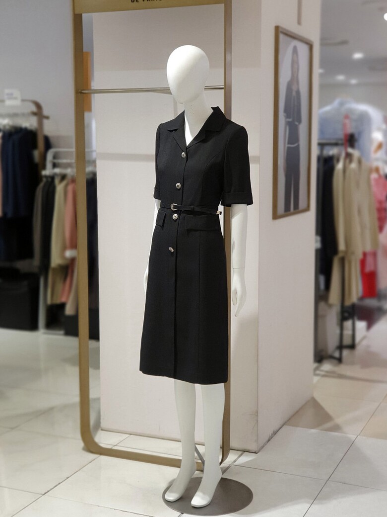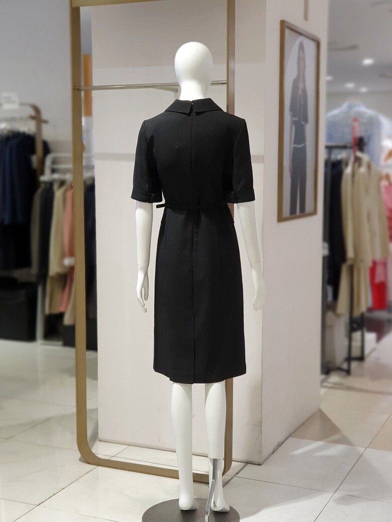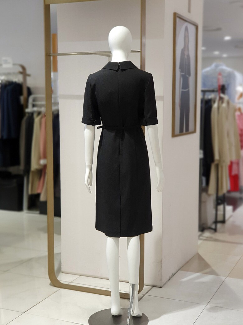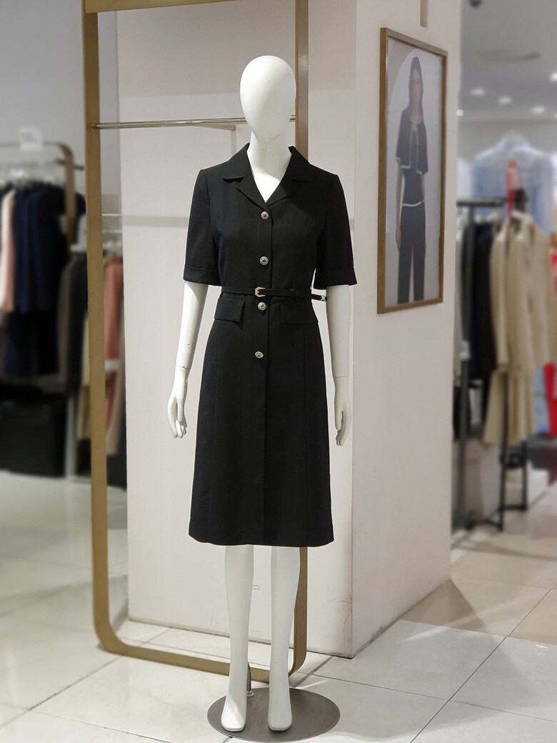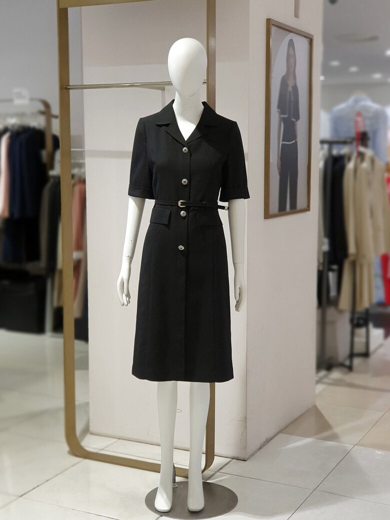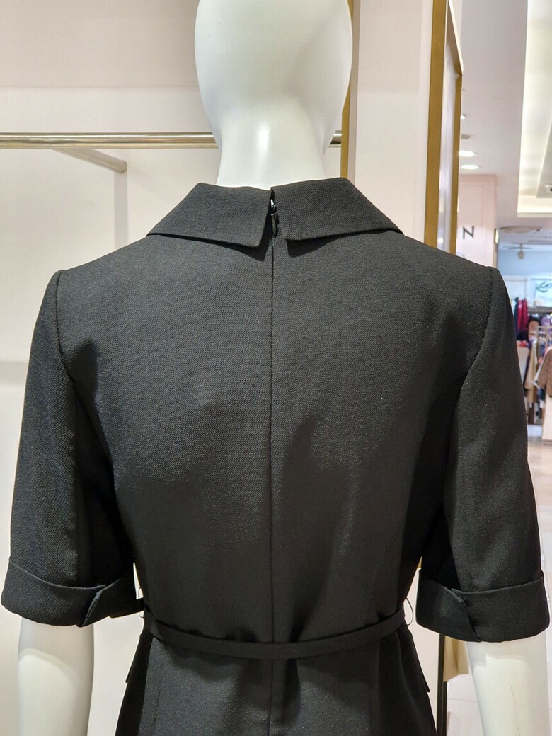 오픈칼라로 네크 맵시를 한층 더한 포멀한 무드의 원피스입니다.
