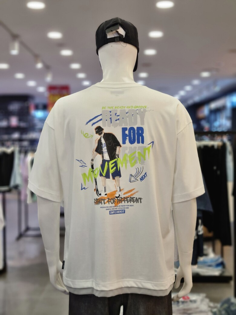 보더 그래픽 레이어드 반팔 티셔츠 R242M1323I 26D2