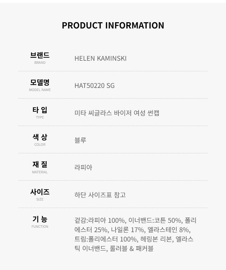 | 3. 치수 | SIZE - 둘레:57.5cmx챙:10cm |
