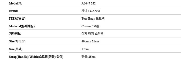 가니 가방 A6647 252 이지 라지 쇼퍼 토트백 당일발송