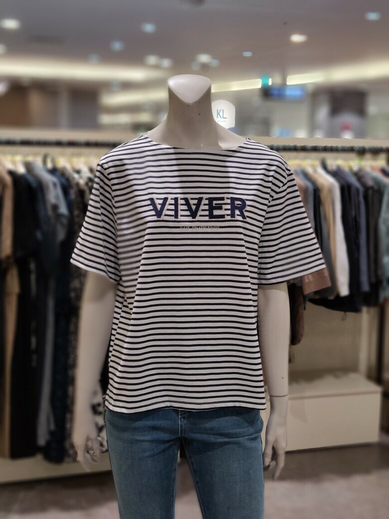 라운드 넥 스트라이프 반팔 티셔츠입니다