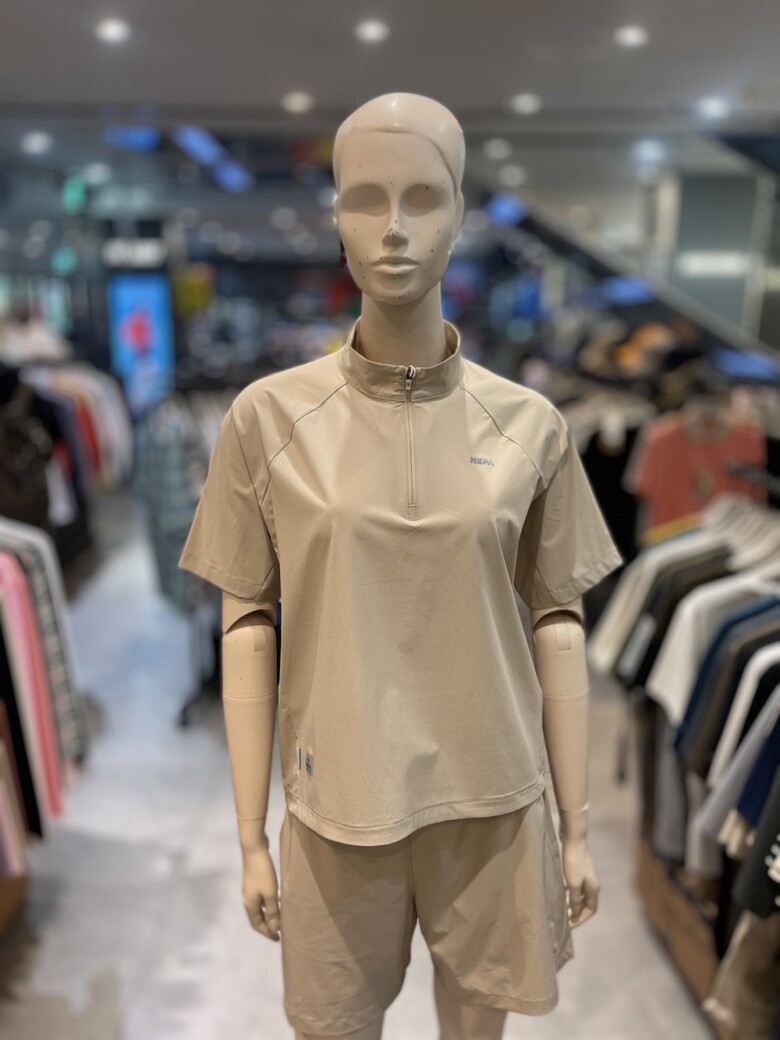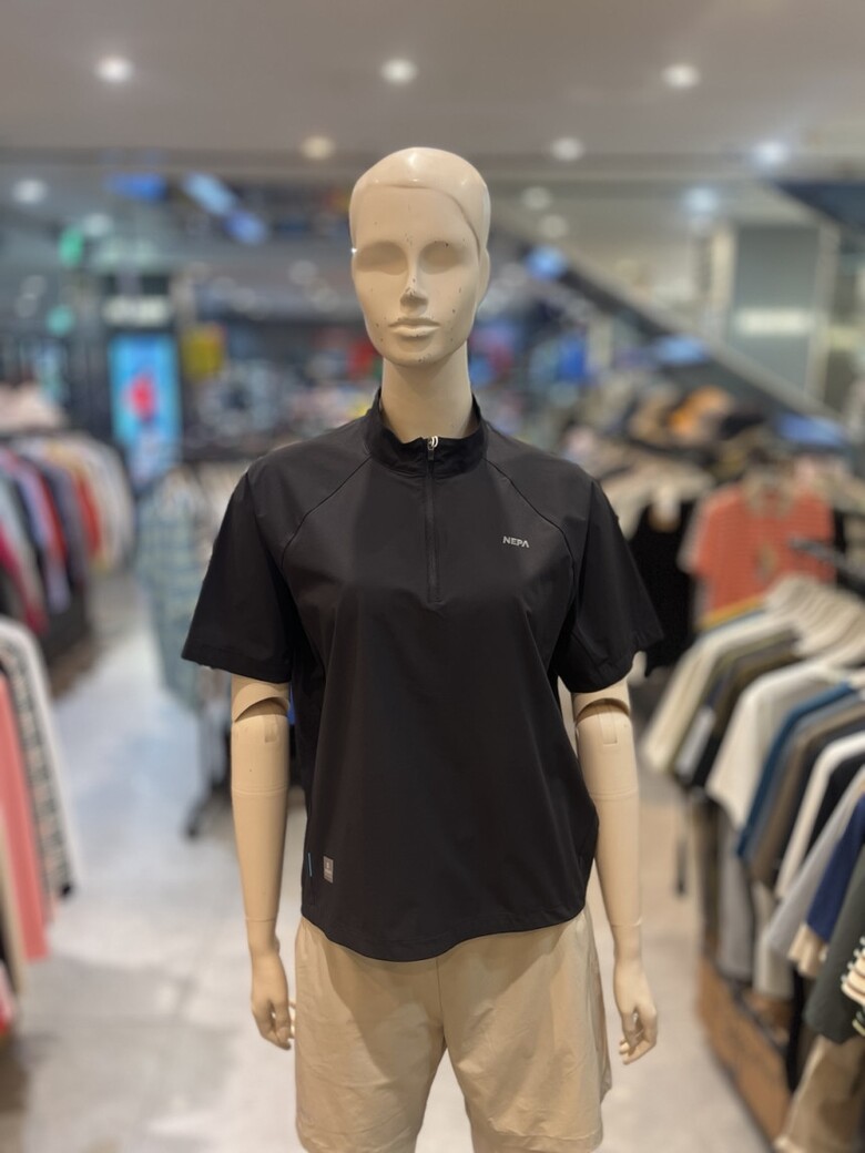 - 퍼포먼스랩 라인의 대표 아이템인 “아이스테크쉘 우븐 반팔 하프집업 티셔츠”