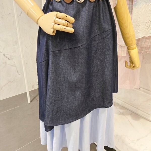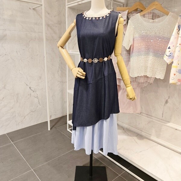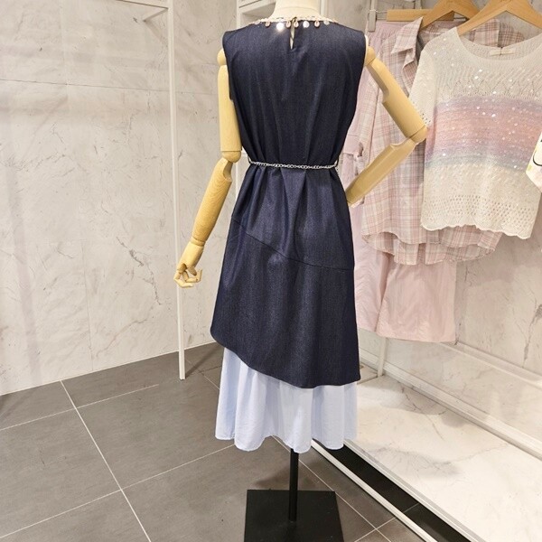 F5BOP500A_밑단 배색 체인 민소매원피스
