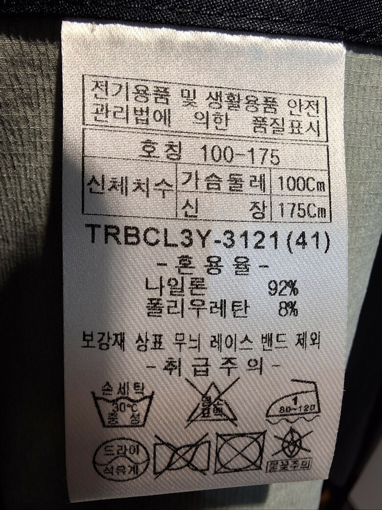 | 1. 제품 소재 (섬유의 조성 또는 혼용률을 백분율로 표시, 기능성인 경우 성적서 또는 허가서) | 나일론 92%, 폴리우레탄 8% |