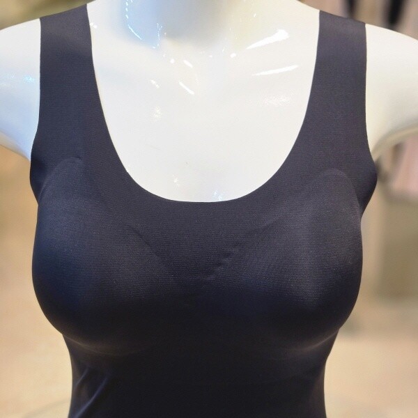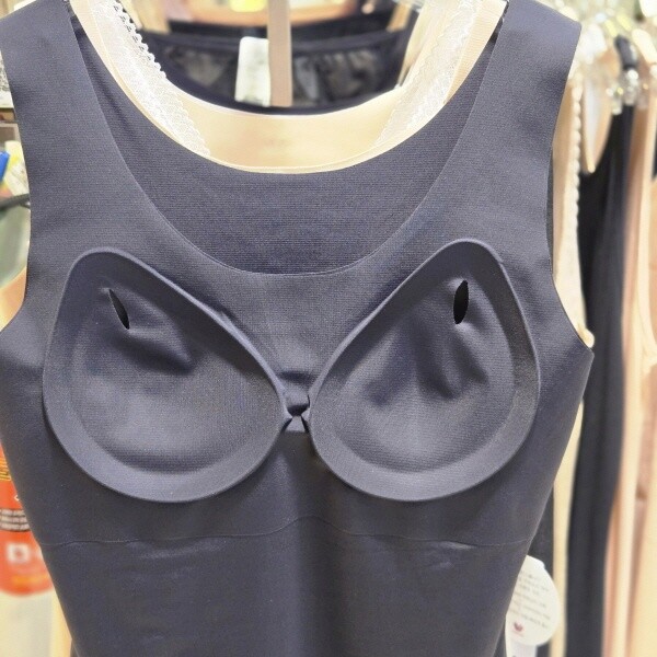 시원하고 가벼운 인견 프리컷 소재의 컵란쥬로 좌우 분리,몸판에 부착된 물방울 모양의 패드를 사용하여 몸의 움직임이 있어도 패드가 자연스럽게 가슴을 감싸주며 세탁시에도 패드가 뒤집어 지는것을 방지해주고 매끈한 실루엣을 연출해주는 제품???