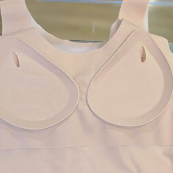 시원하고 가벼운 인견 프리컷 소재의 컵란쥬로 좌우 분리,몸판에 부착된 물방울 모양의 패드를 사용하여 몸의 움직임이 있어도 패드가 자연스럽게 가슴을 감싸주며 세탁시에도 패드가 뒤집어 지는것을 방지해주고 매끈한 실루엣을 연출해주는 제품