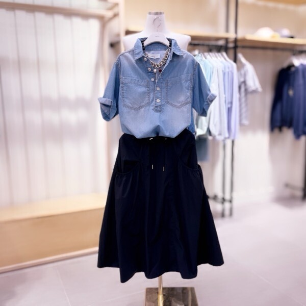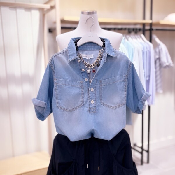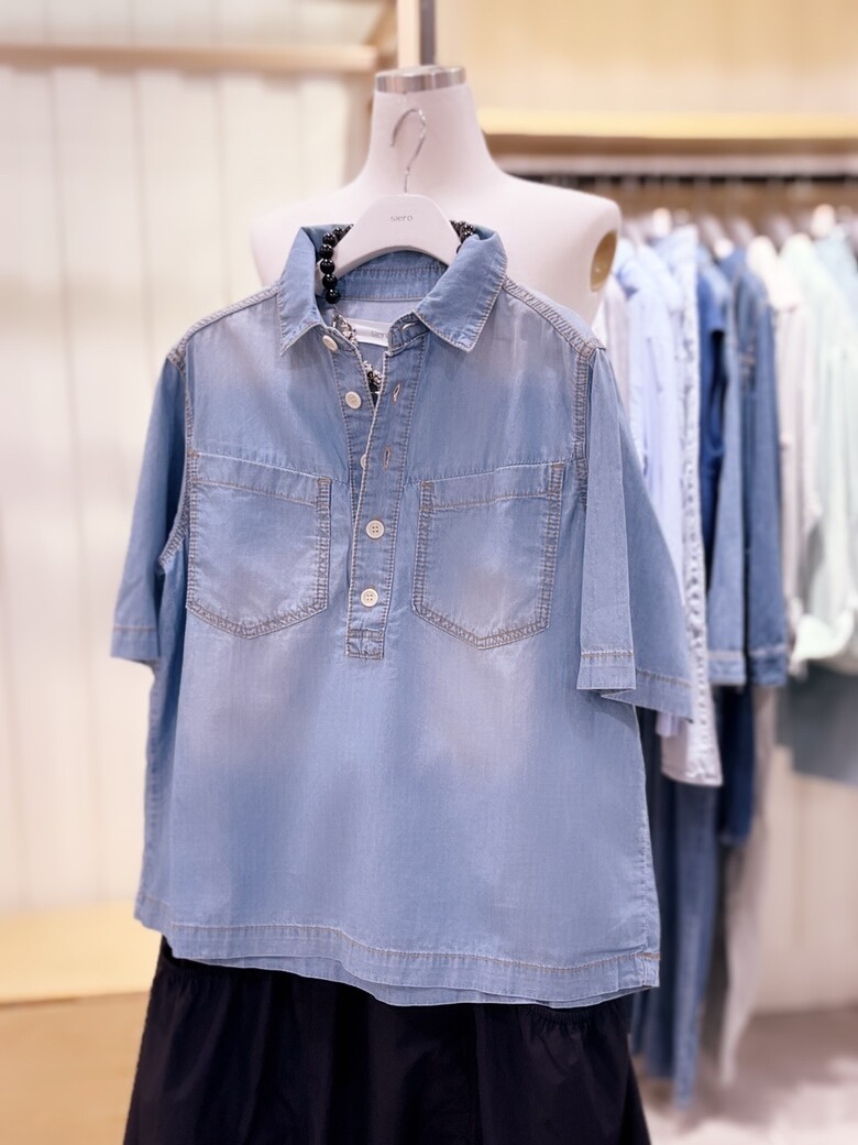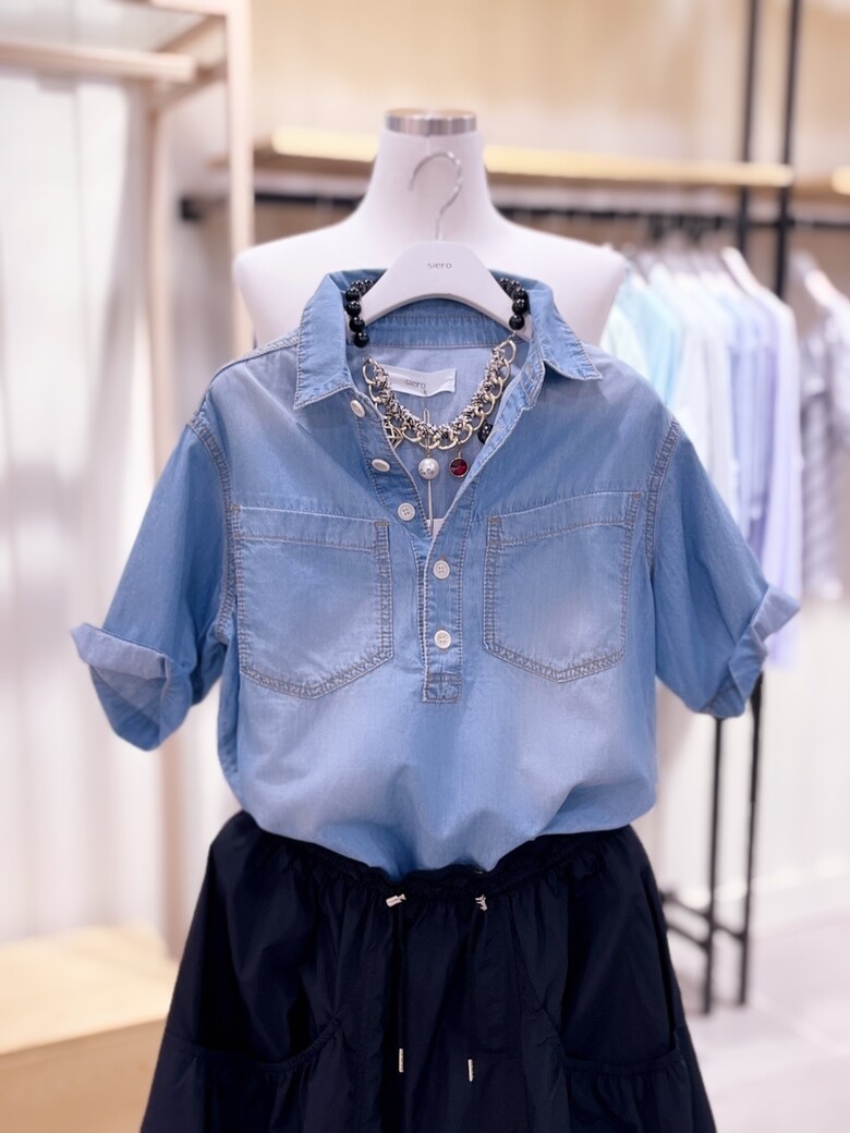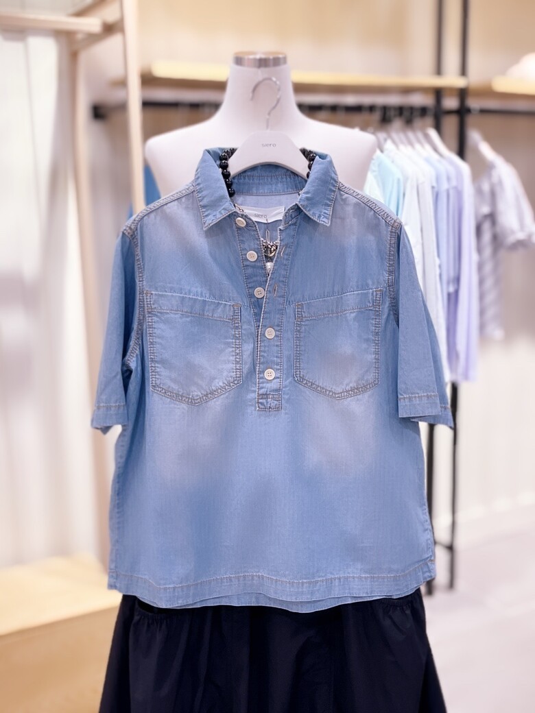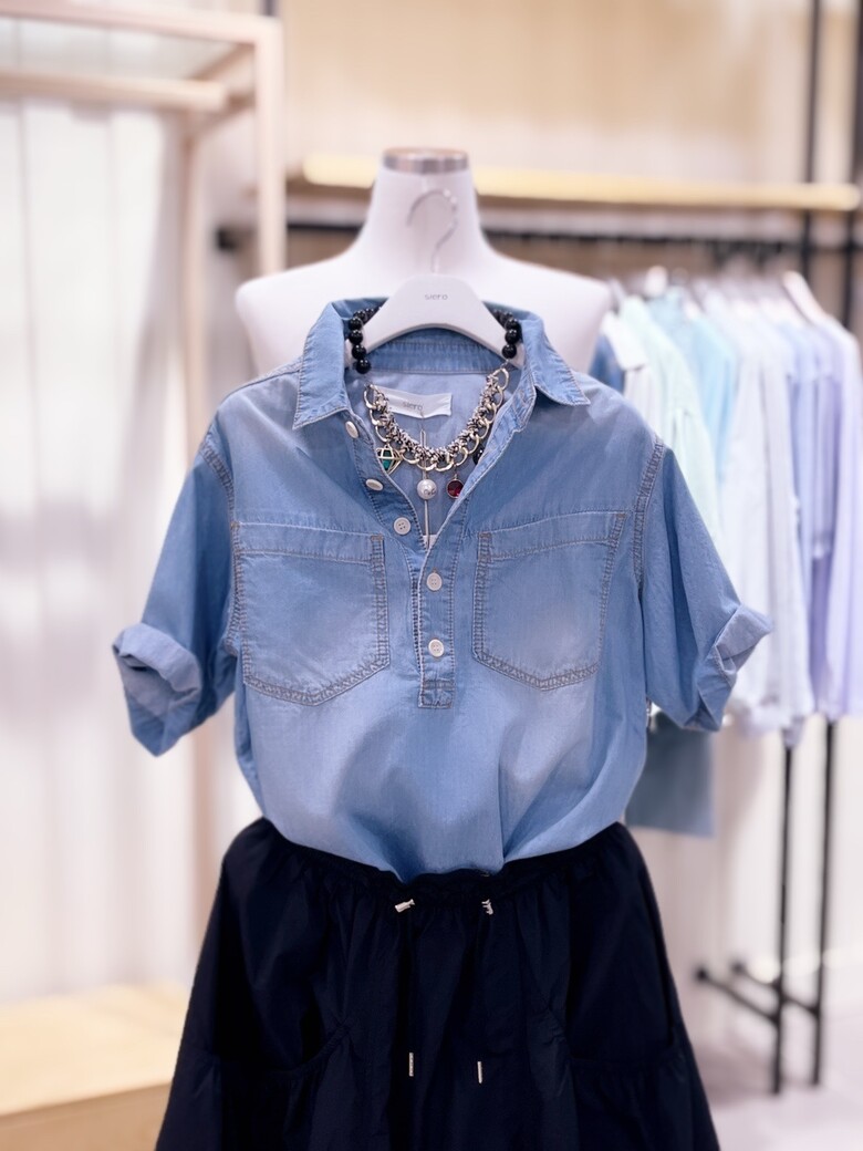 DBSI2SHF724_포켓 포인트 반팔 데님셔츠