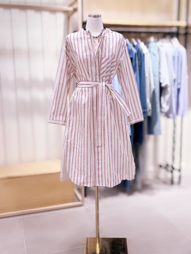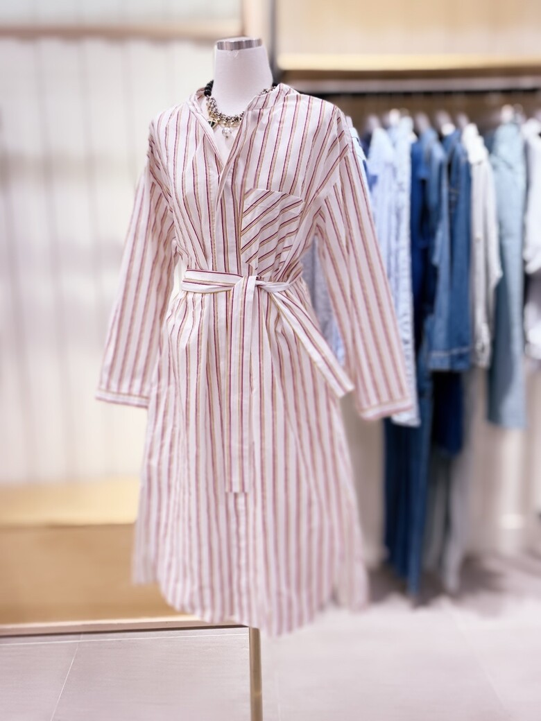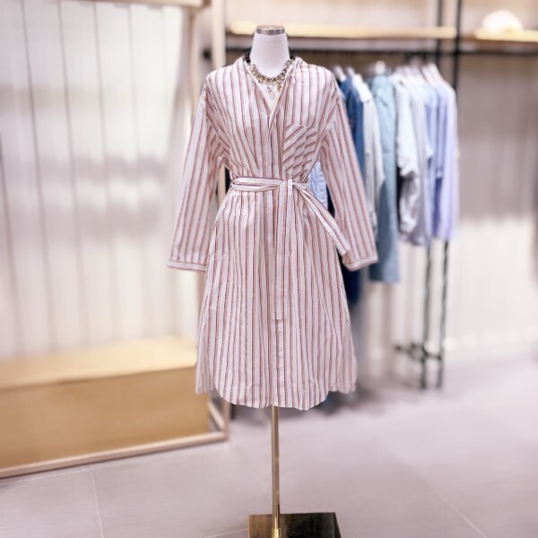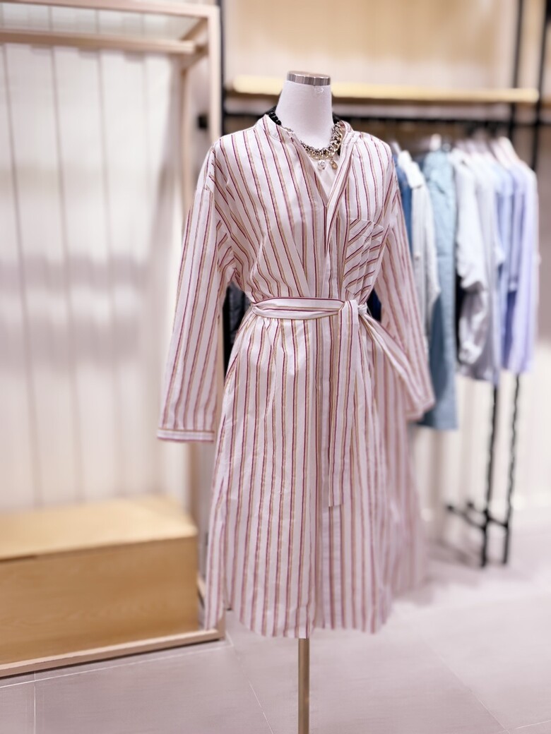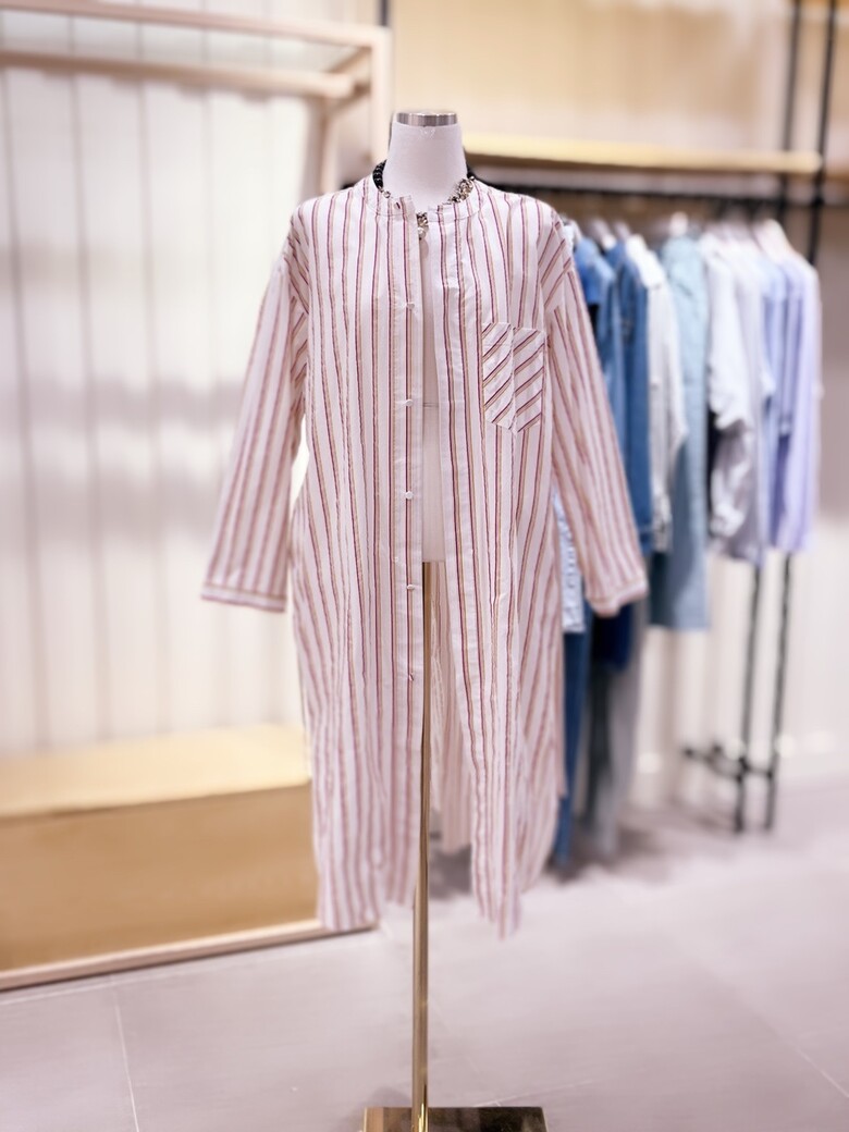 스트라이프 패턴으로 밋밋함 없이?롱 기장으로 멋스럽게 코디 가능하며?벨트끈이 있어 다양하게 코디 하기 좋은 스트라이프 롱 셔츠 입니다