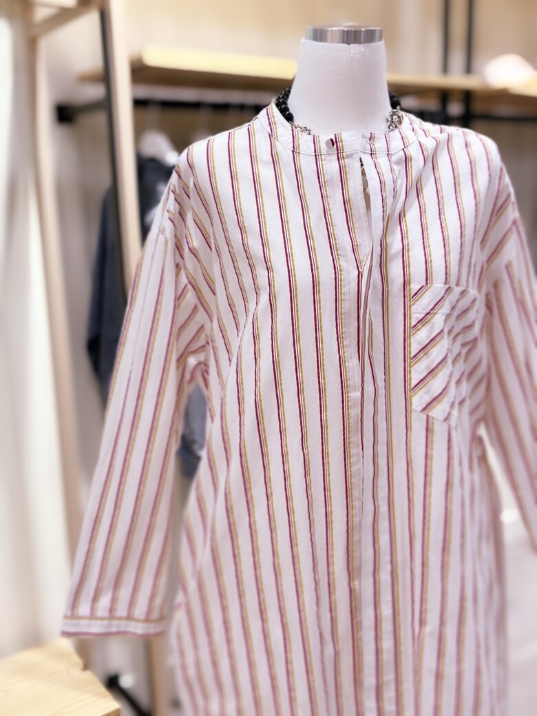 DBSE4SHF274_차이나카라 스트라이프 롱기장 셔츠