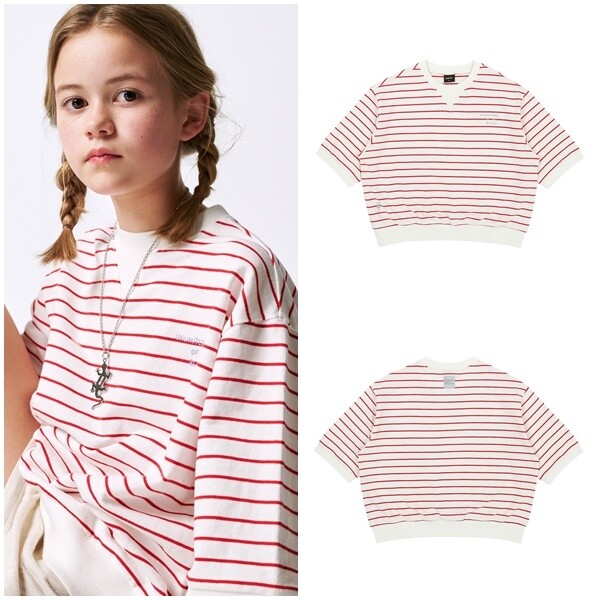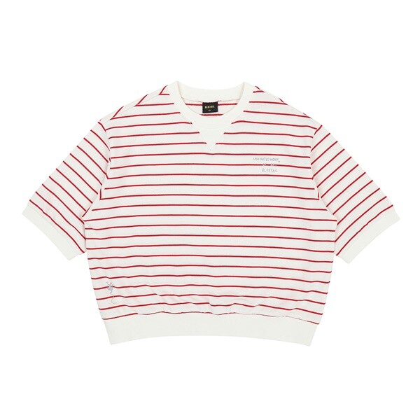 AZA8TS03RD_레드 스트라이프 반팔 맨투맨