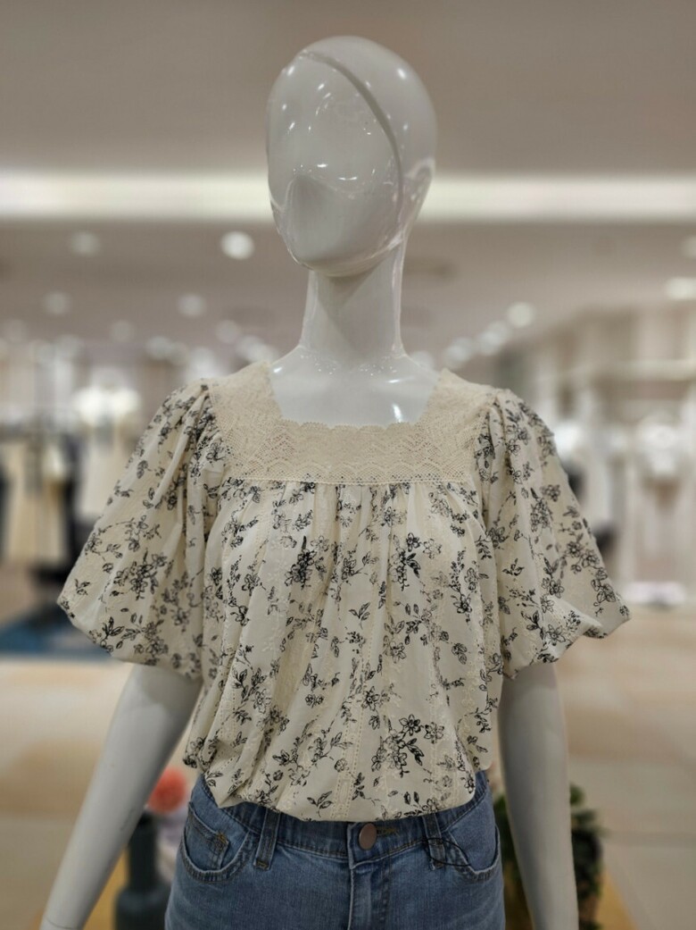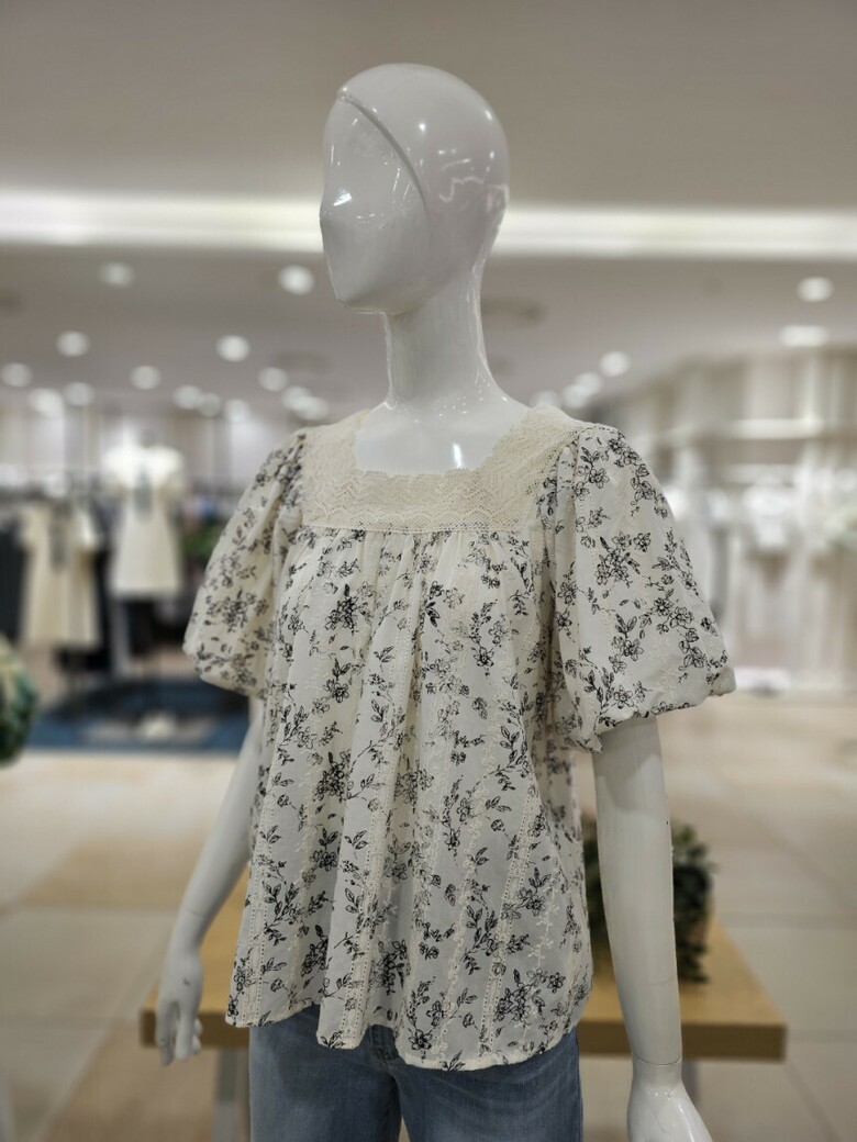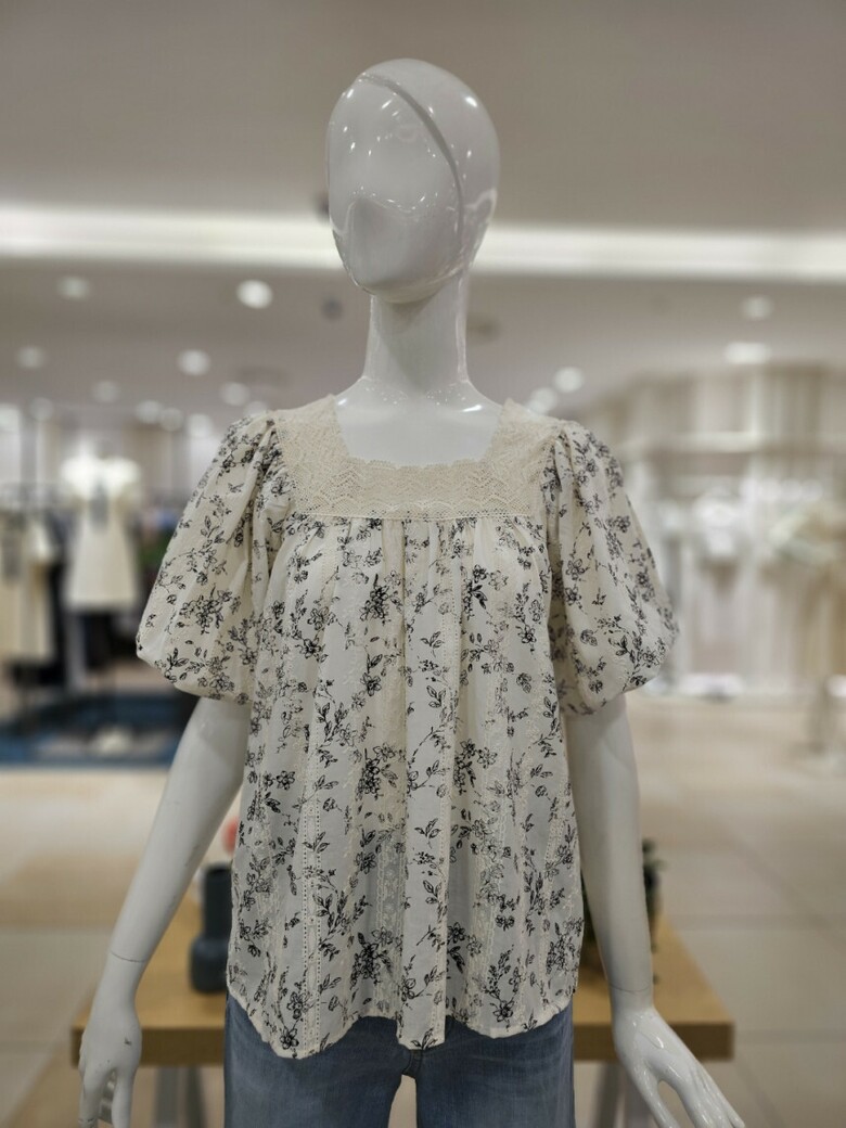스퀘어넥 퍼프 블라우스