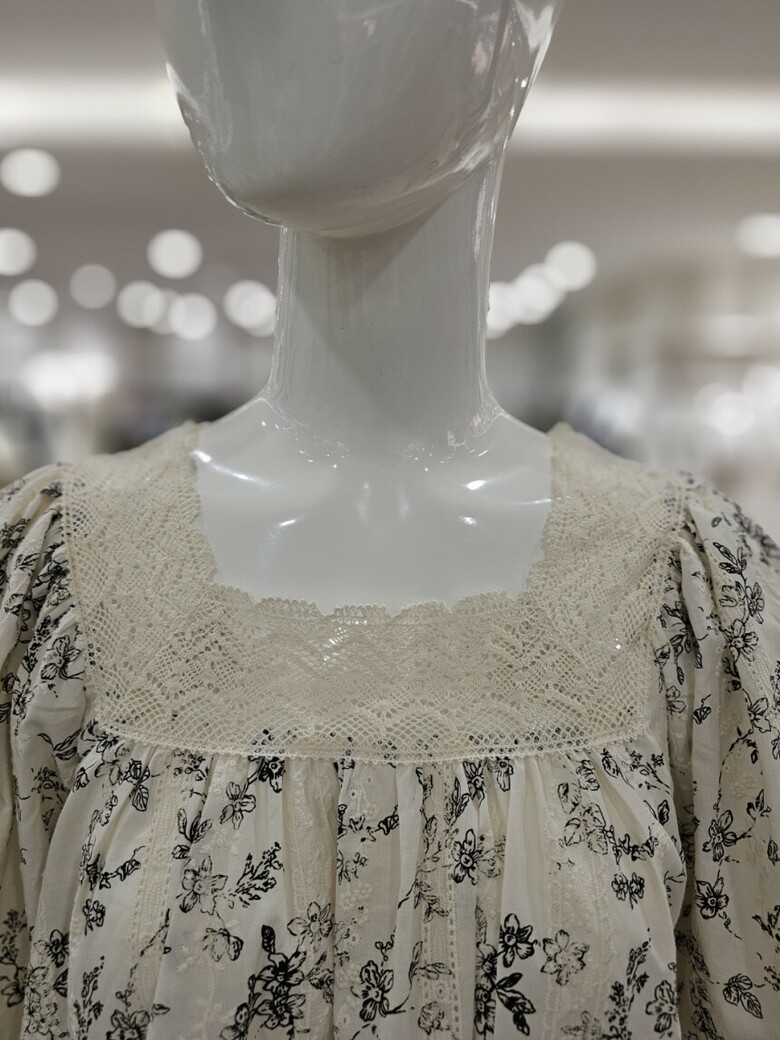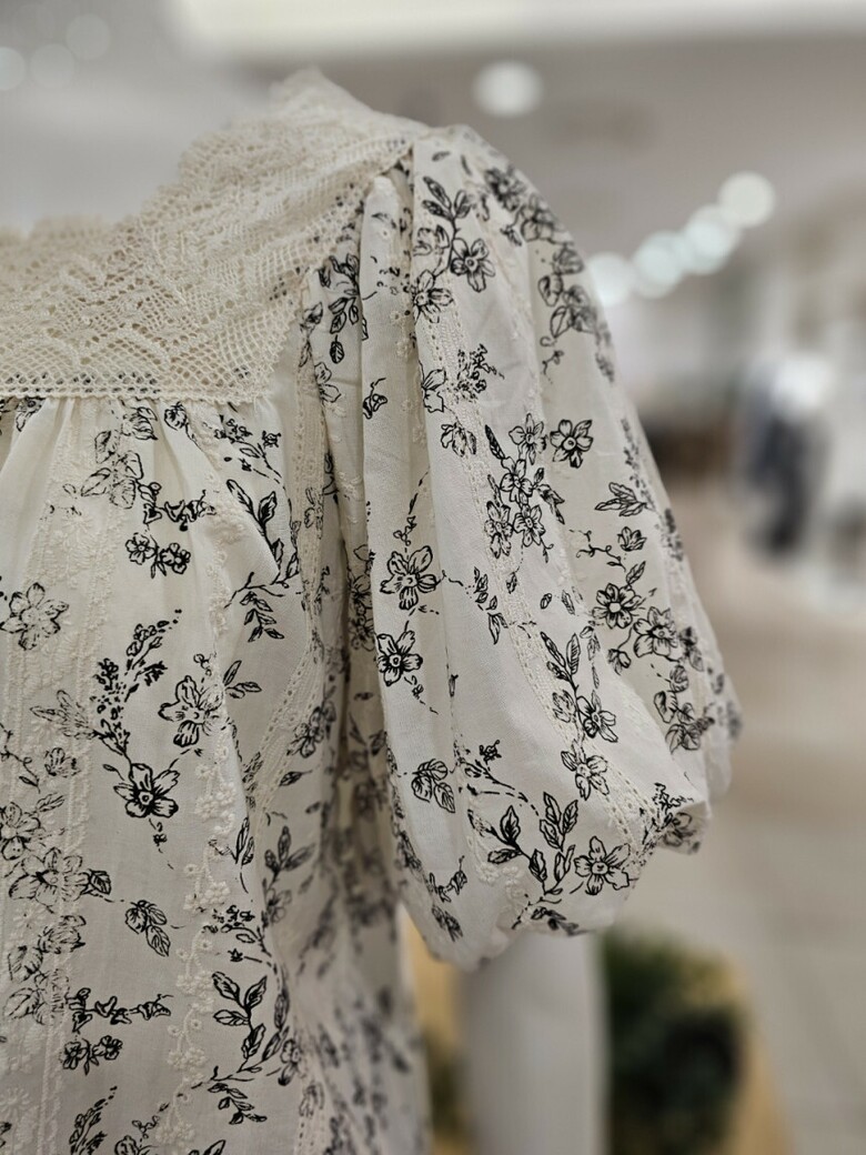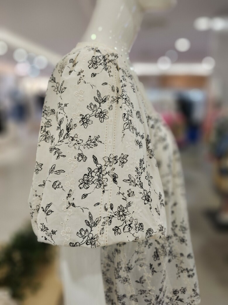 퍼프소매 디자인이 여리여리한 핏을