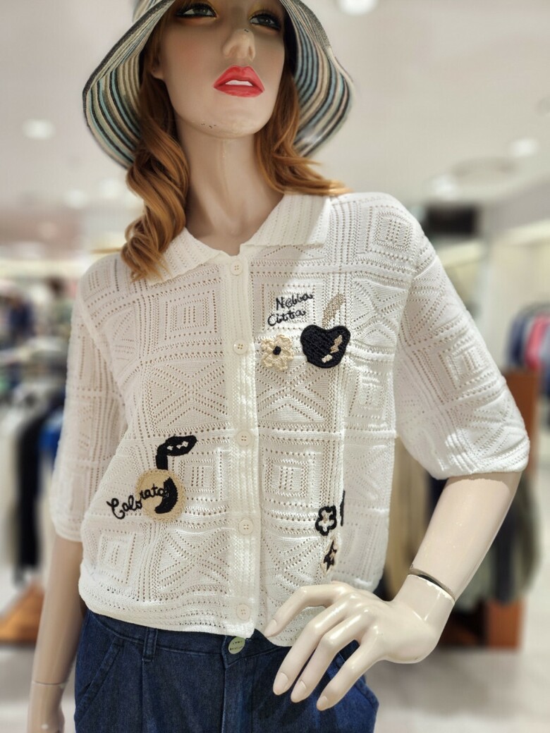 베네통 카라넥 자수 스카시가디건 BAKCA8531