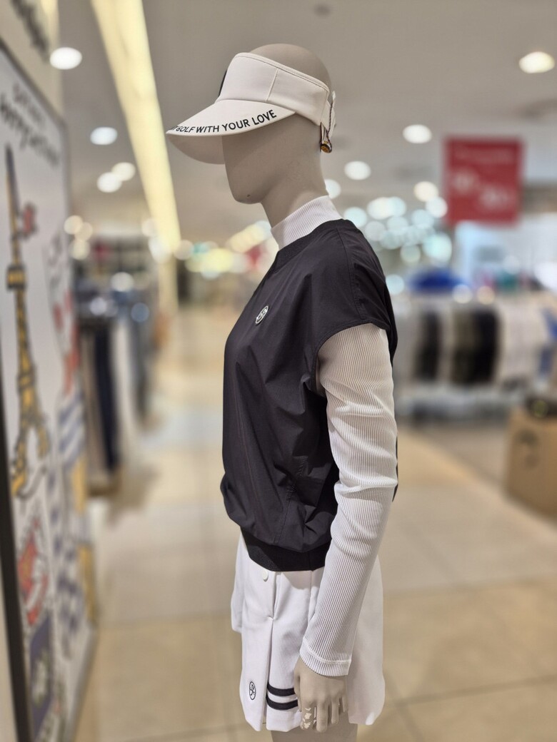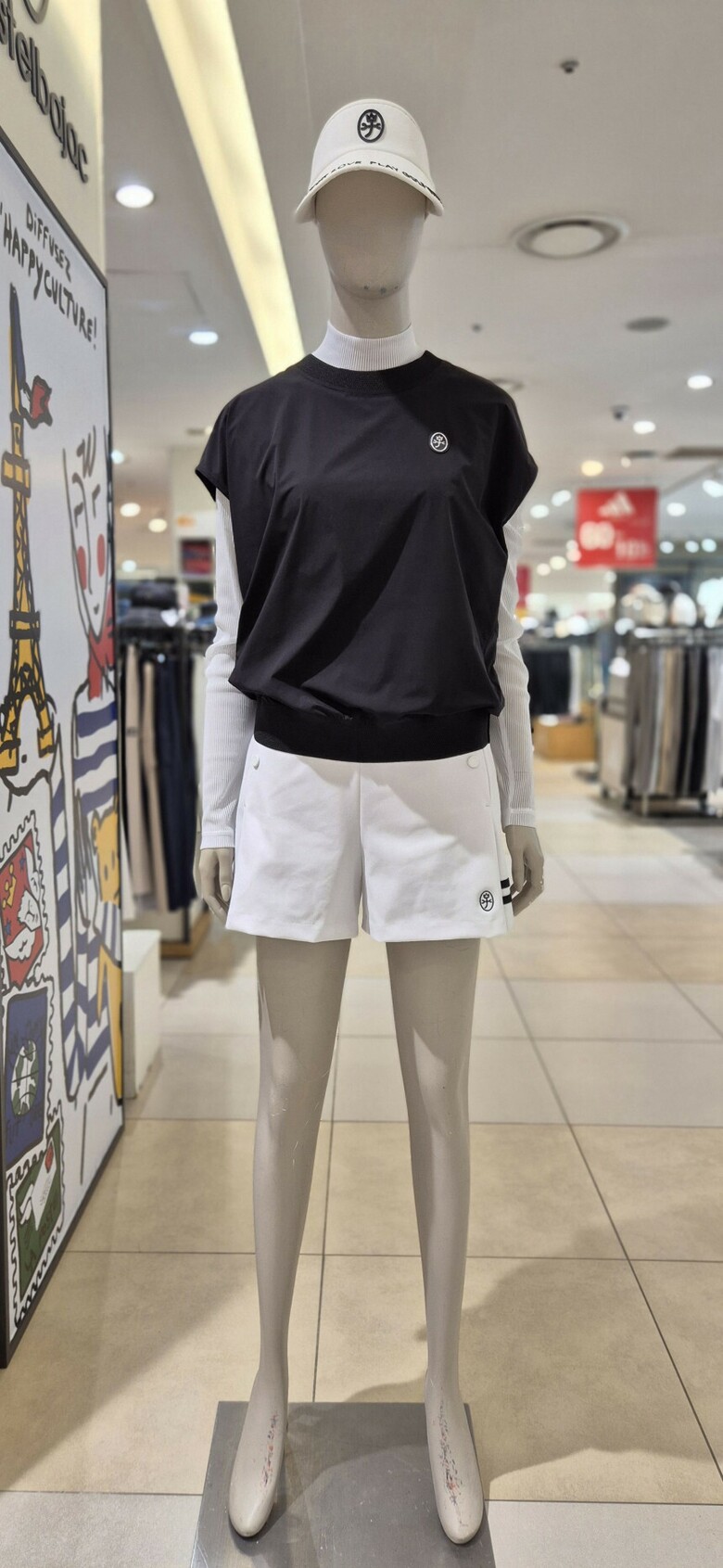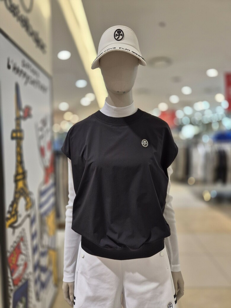 여성 세미 오버핏 라운드 넥 바람막이 조끼 BGEMTS718 BK
